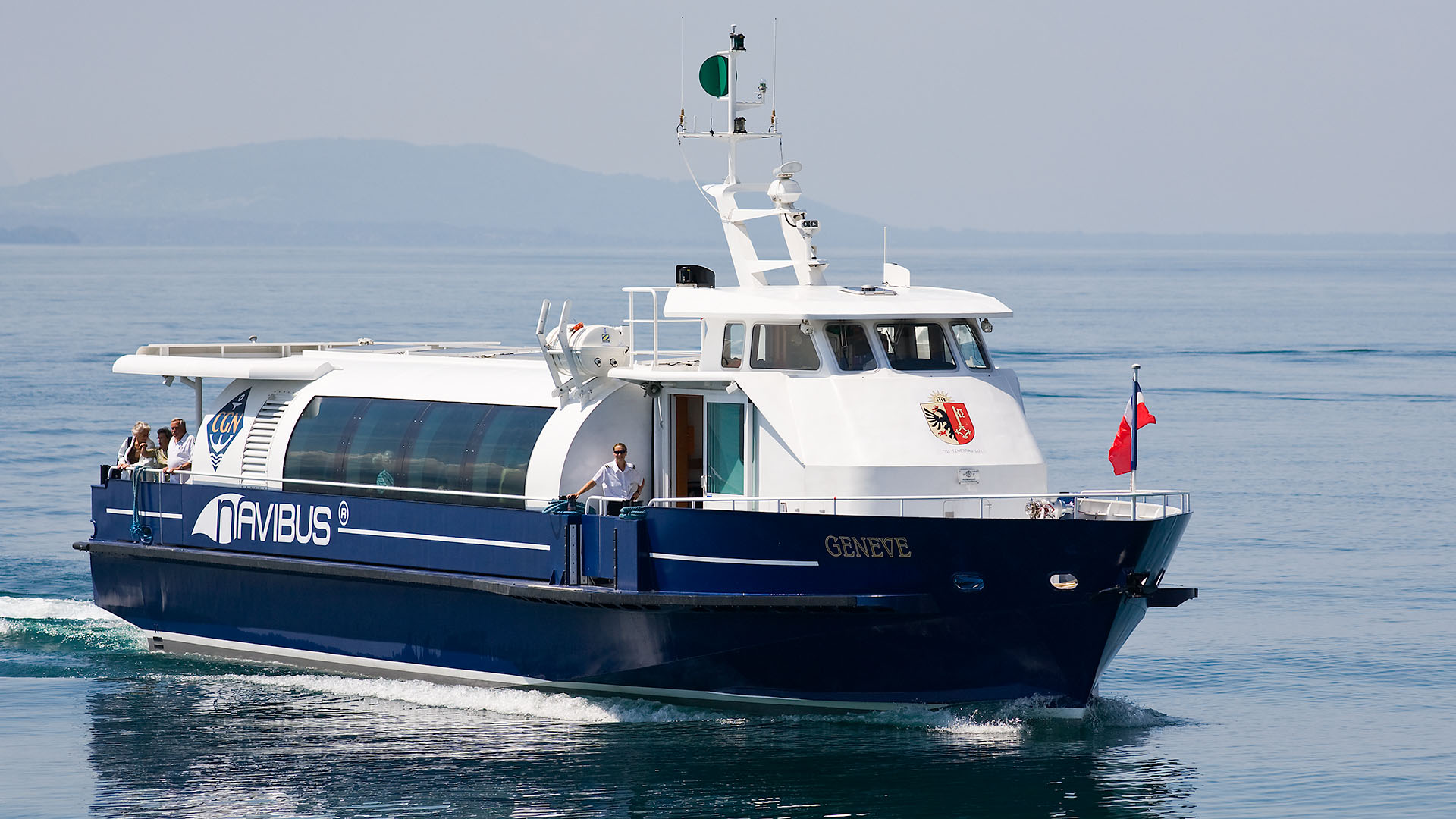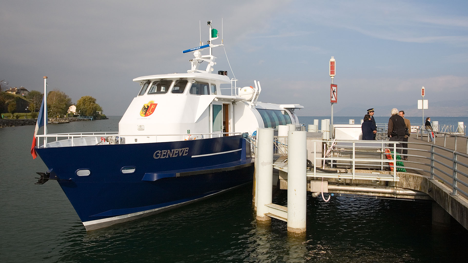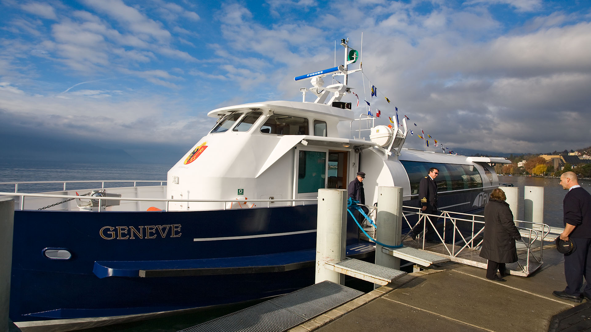 Présentation du bateau en avant-première aux autorités valaisannes; course de démonstration Le Bouveret-Évian-les-Bains & retour (23 octobre 2007)>