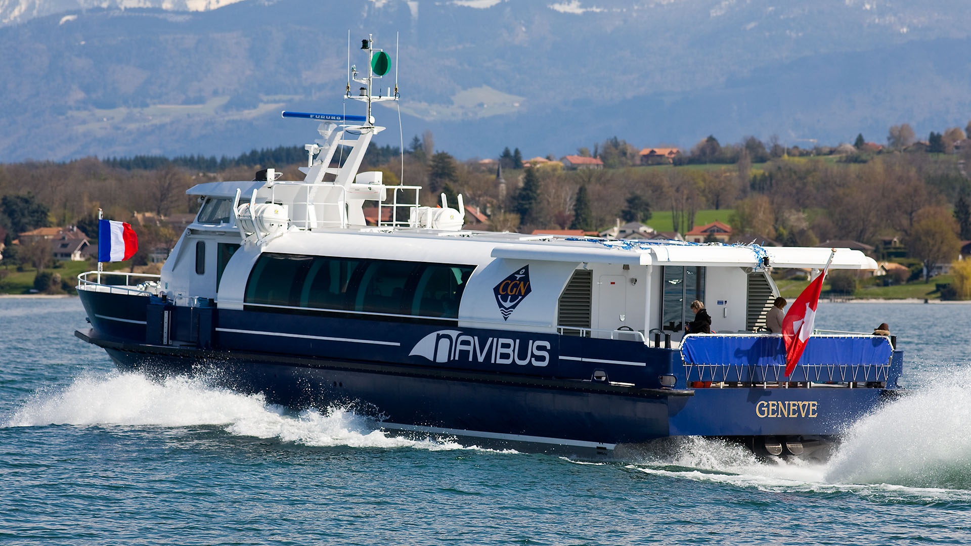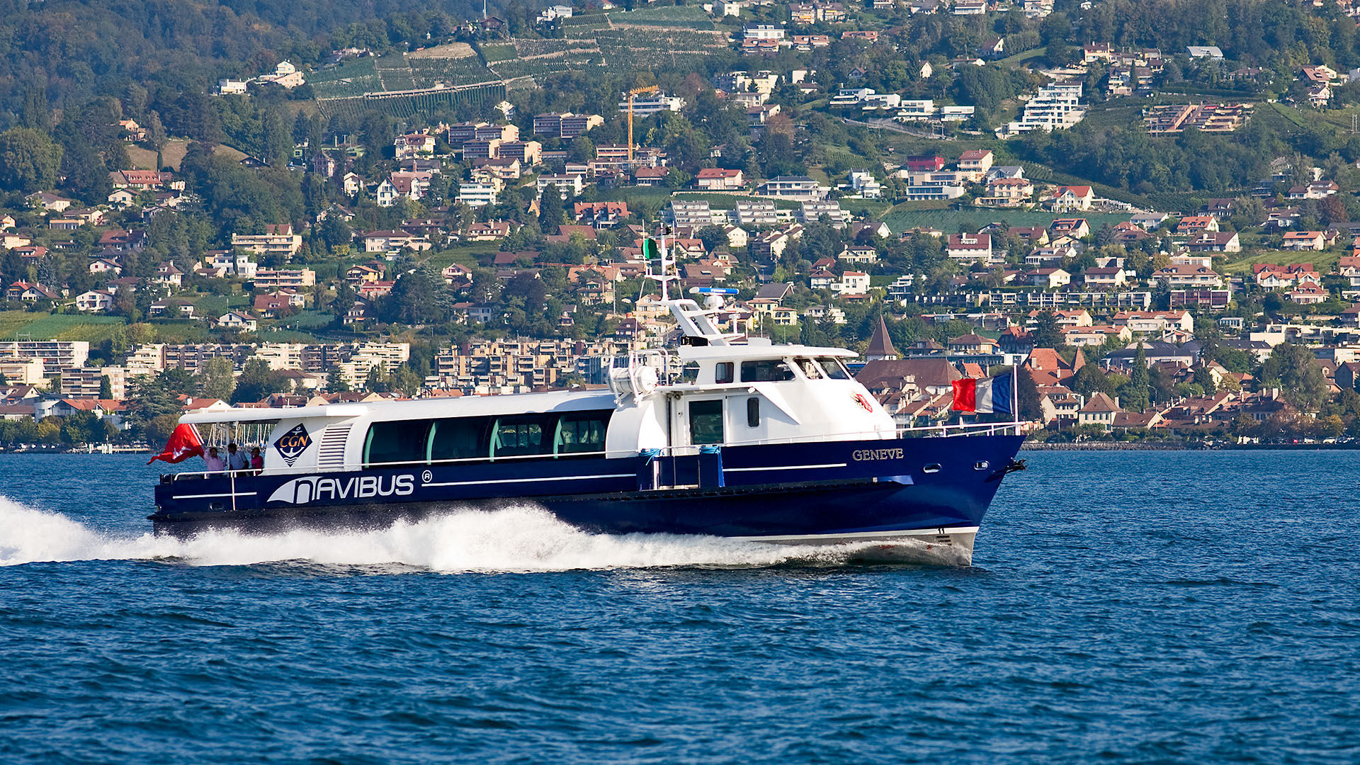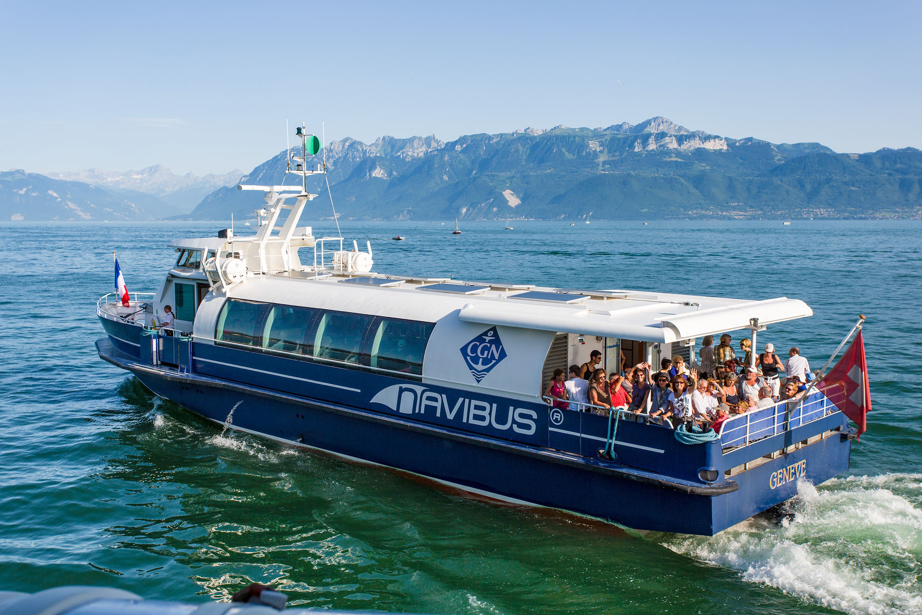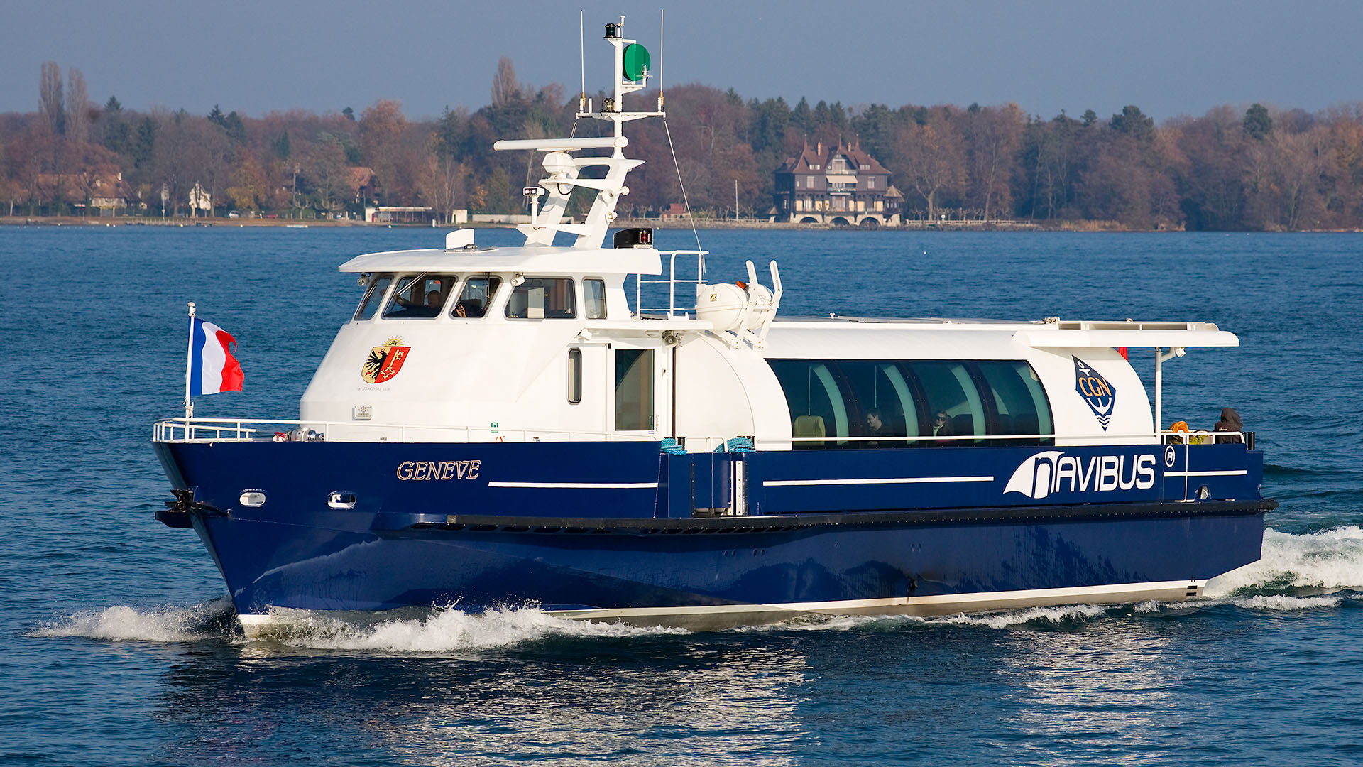 Présentation du bateau en avant-première aux autorités valaisannes; course de démonstration Le Bouveret-Évian-les-Bains & retour (23 octobre 2007)>