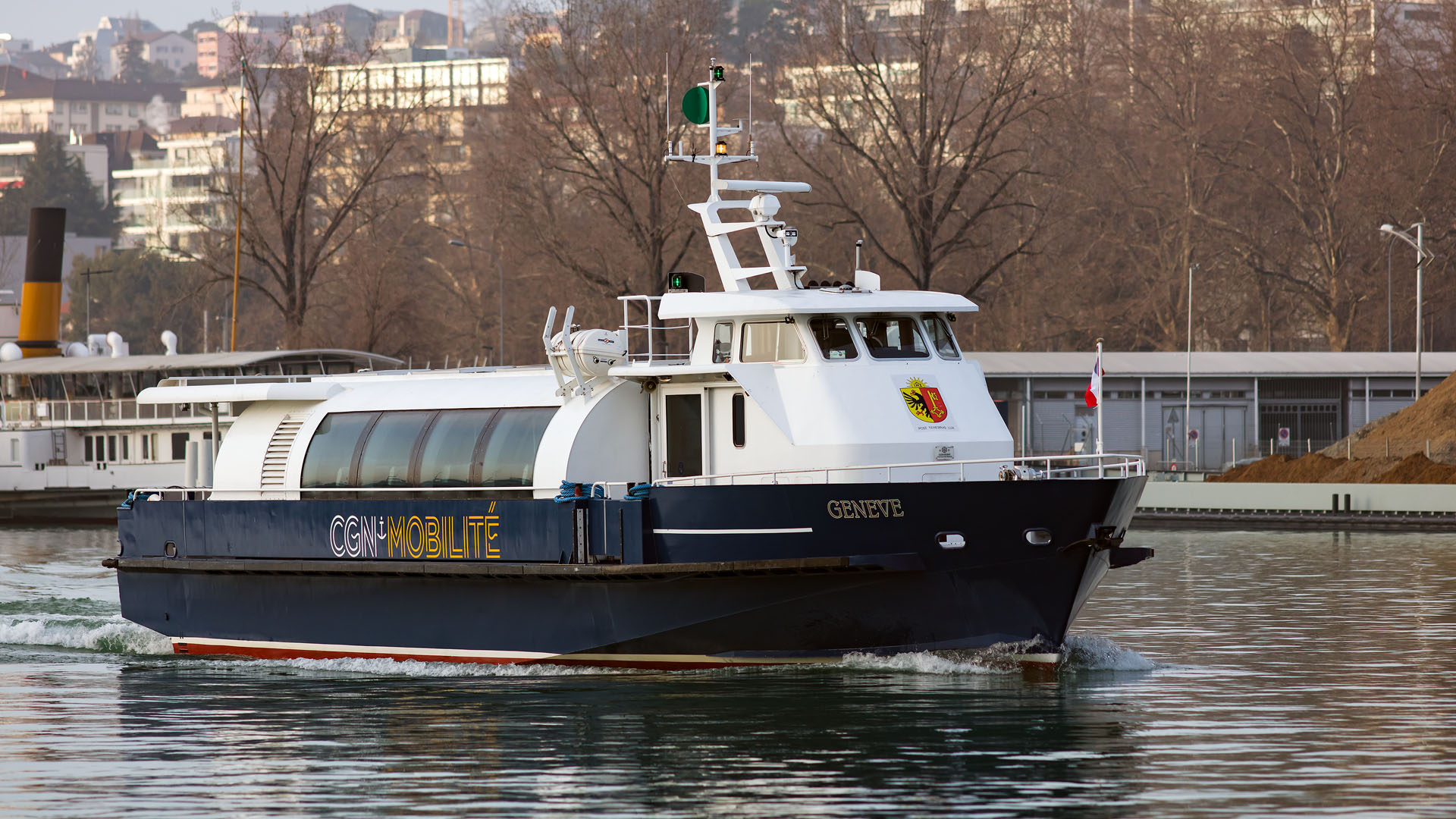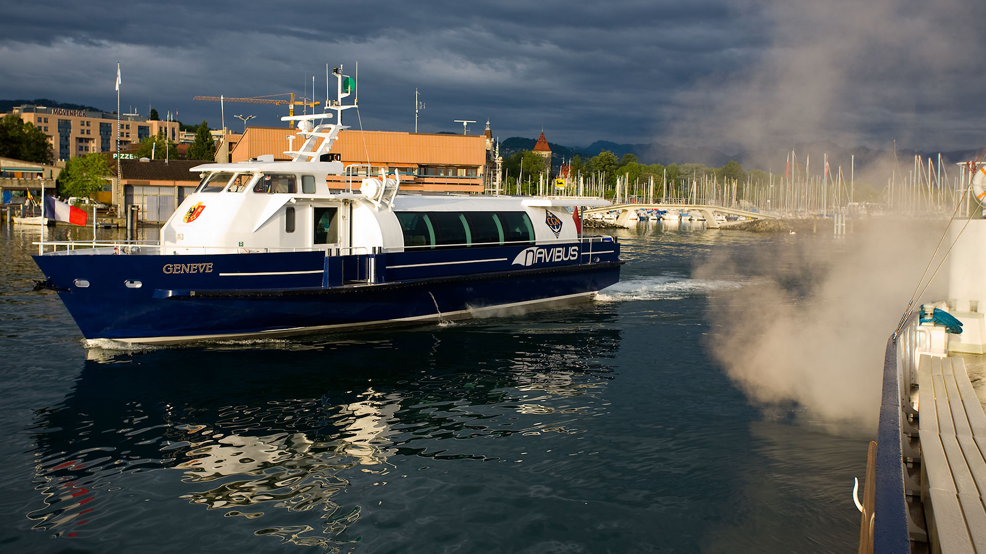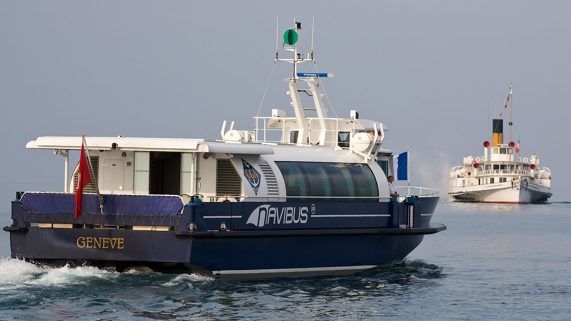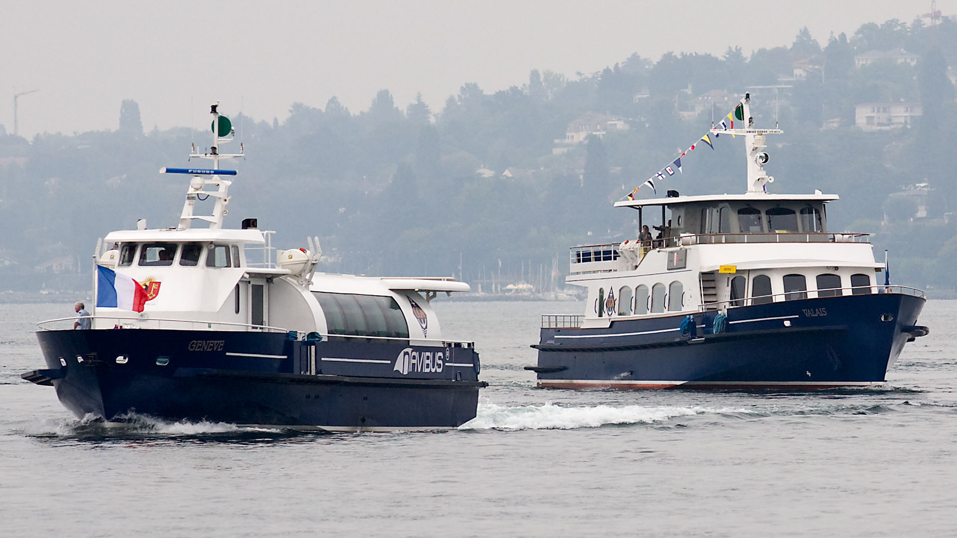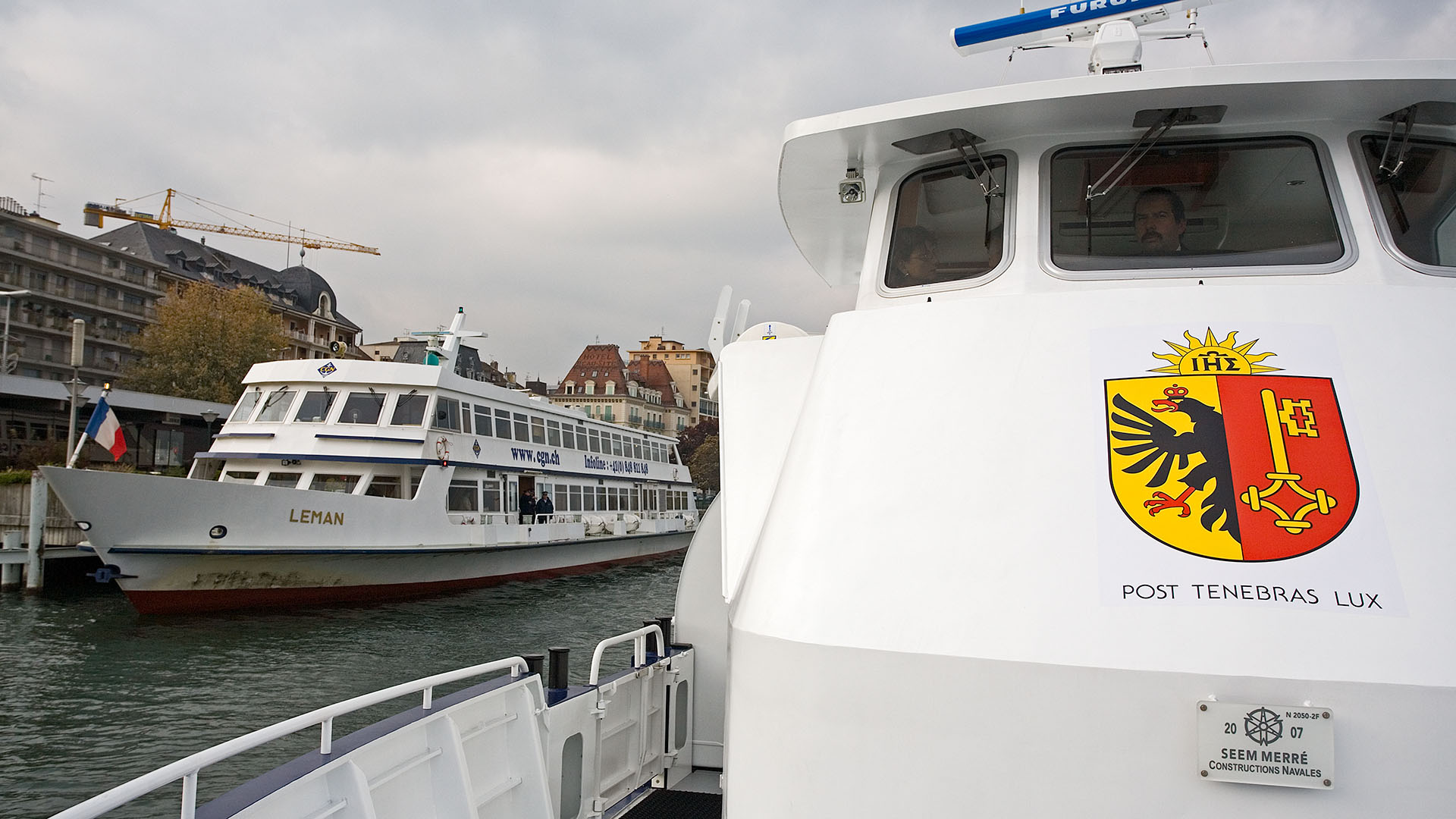 Arrivée de conserve avec le M/S Valais dans la rade de Genève (18 septembre 2008)>