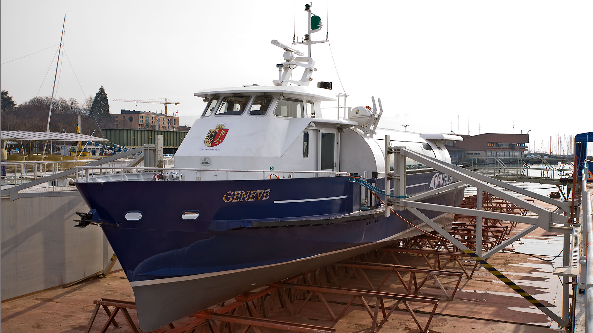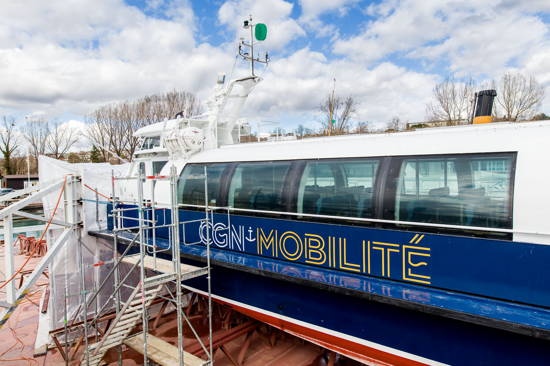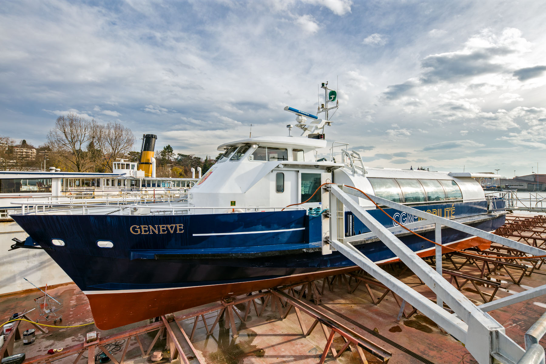 Au chantier CGN; sur le dock, le M/S Morges (29 mars 2016)>