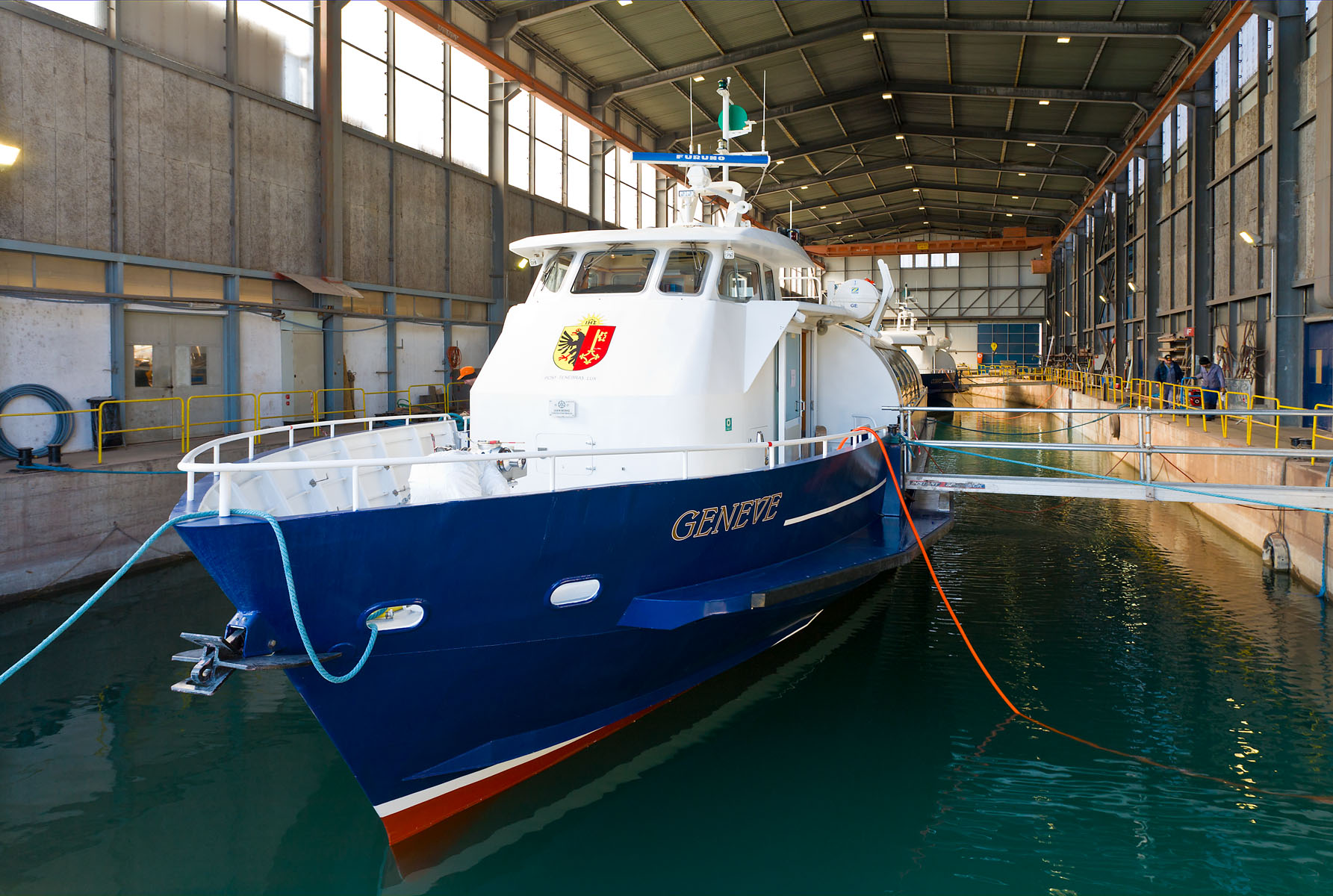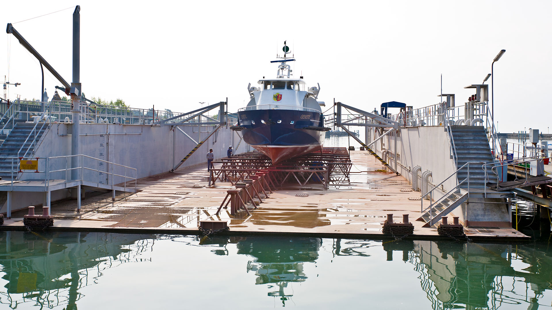Dans le bassin de radoub du chantier CGN (28 novembre 2014)>