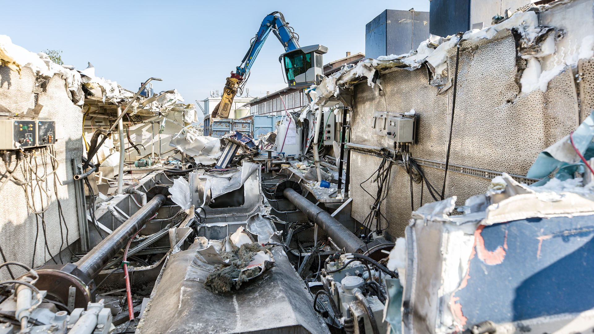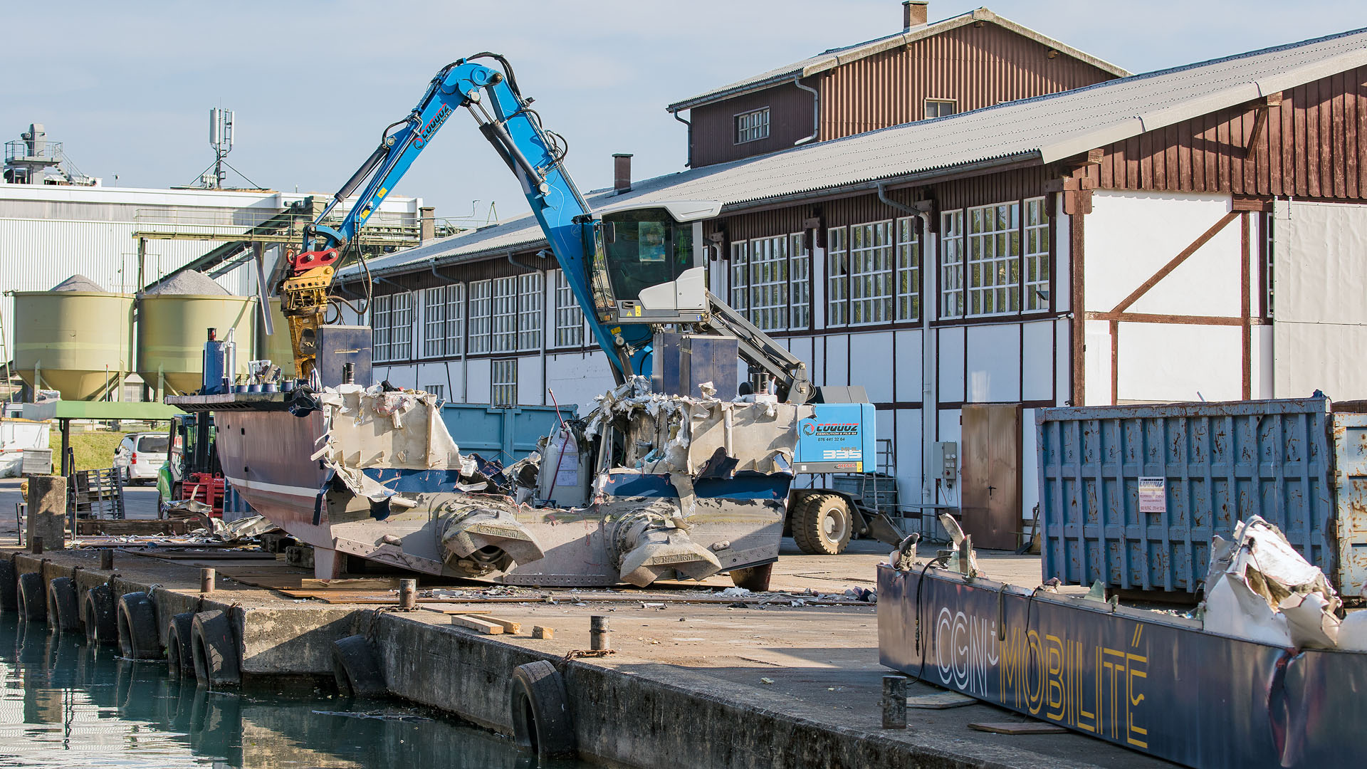 Démolition dans le chantier RHONA au Bouveret (7 juillet 2023)>