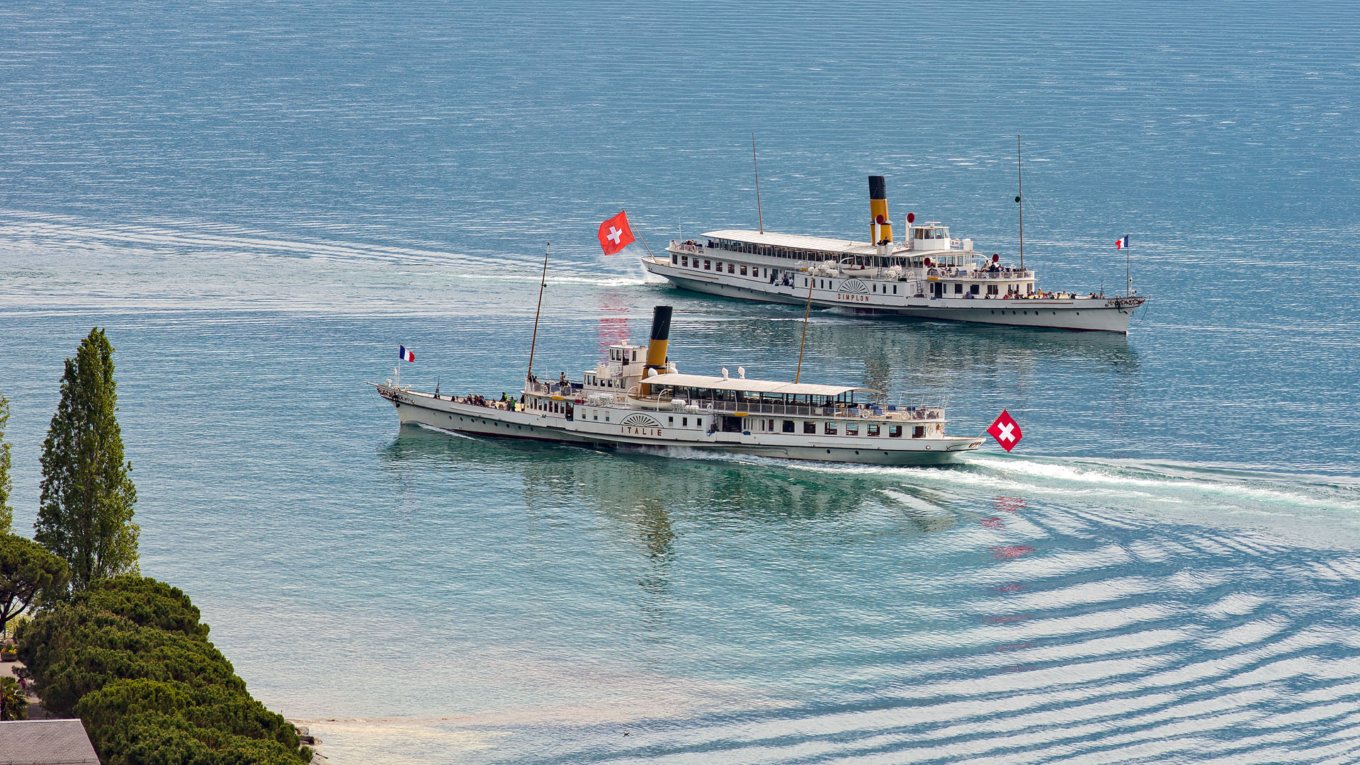 Navigation de conserve avec le S/S Rhône devant Montreux (10 juin 2017)