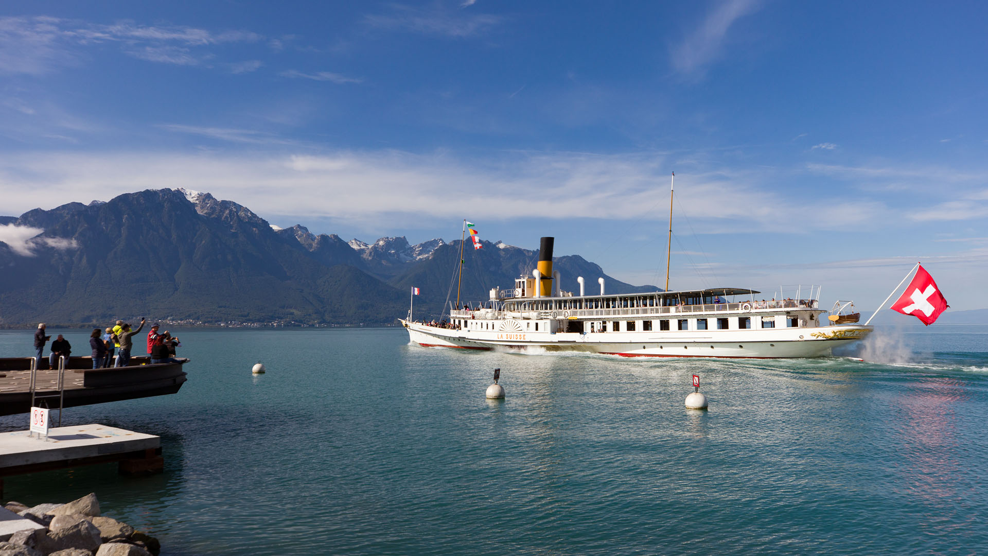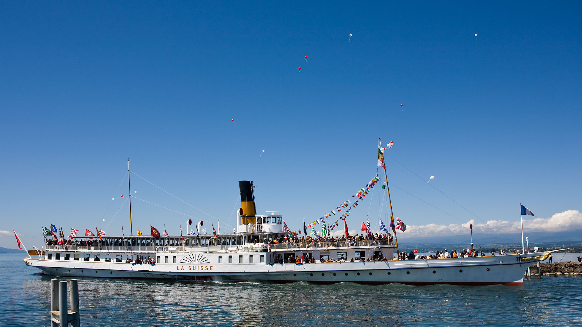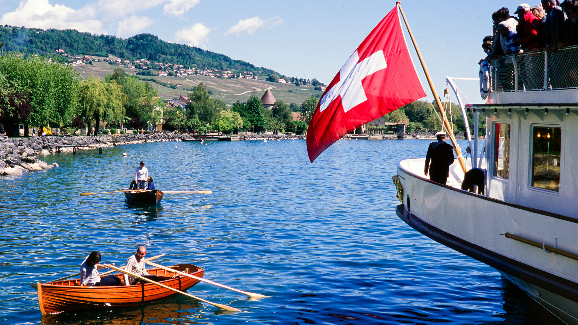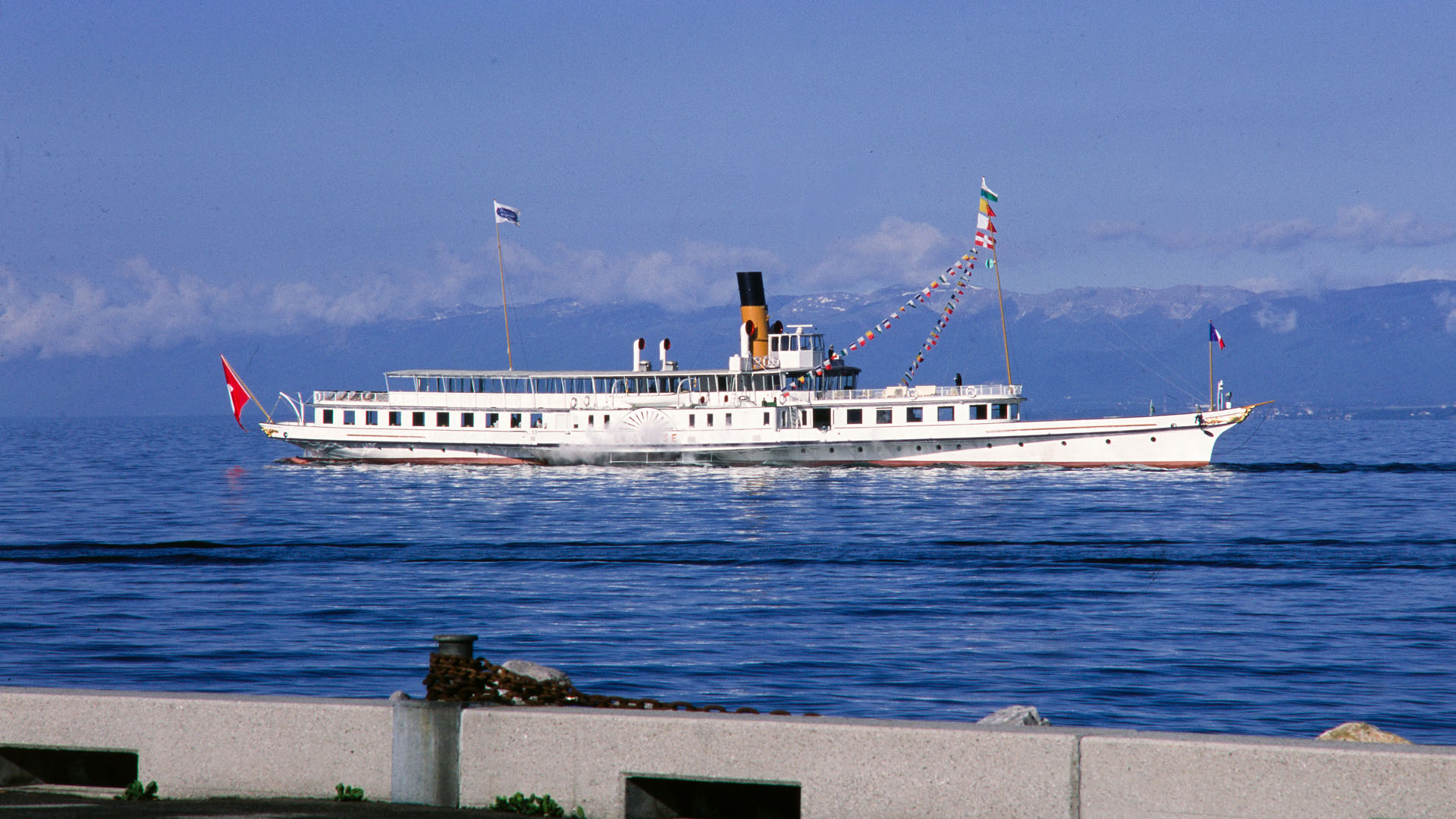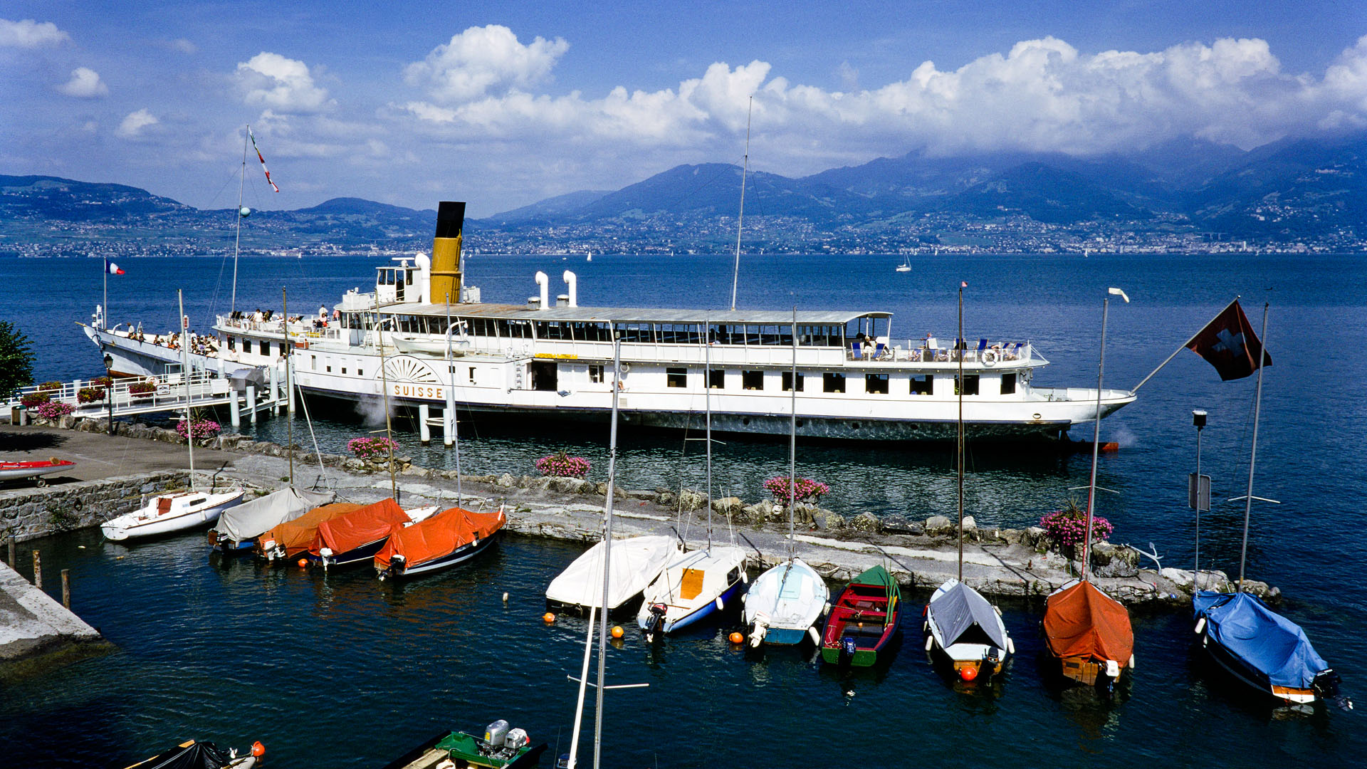 Accostage à Évian-les-Bains, tour du Haut-Lac (1997)
