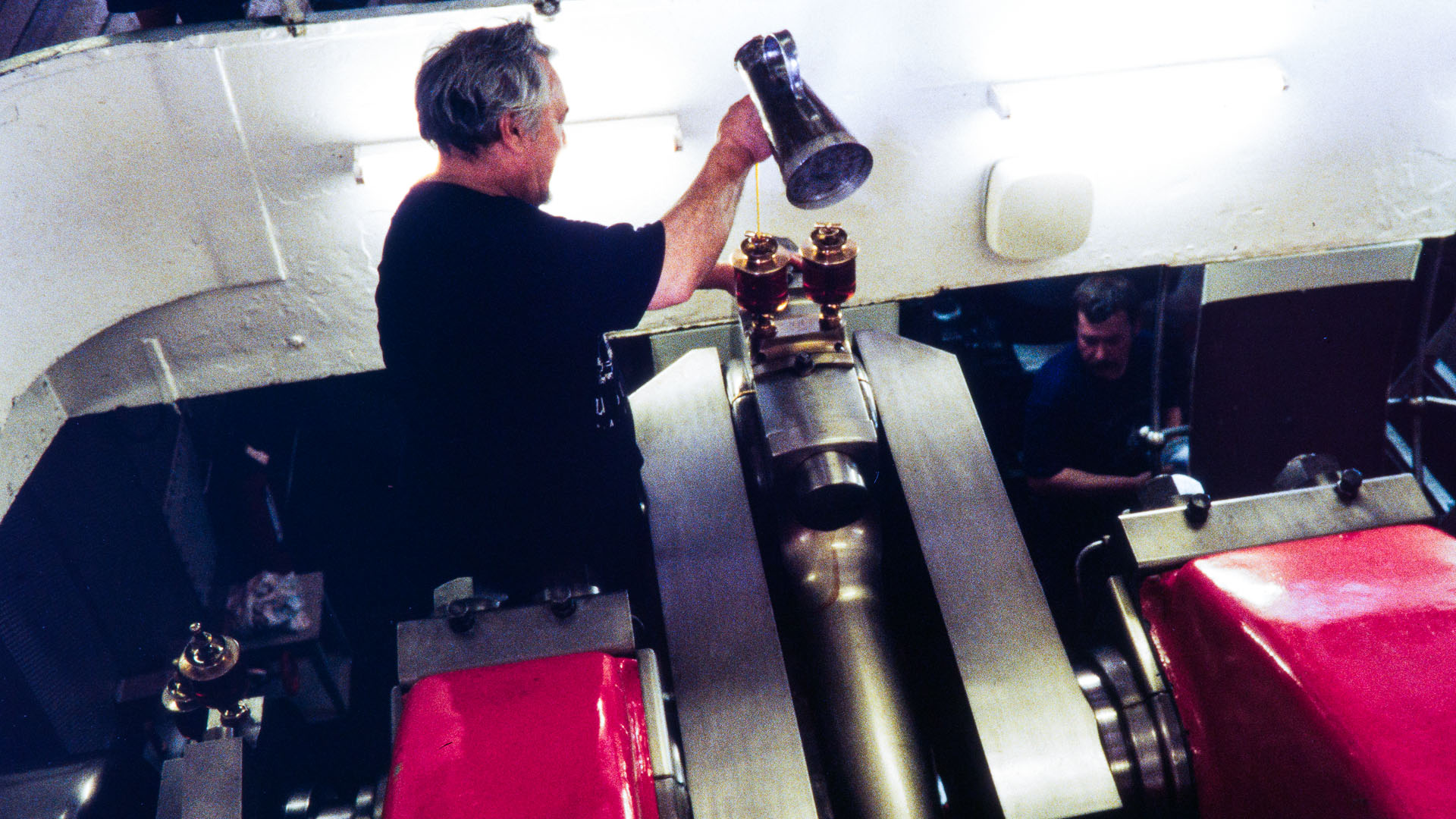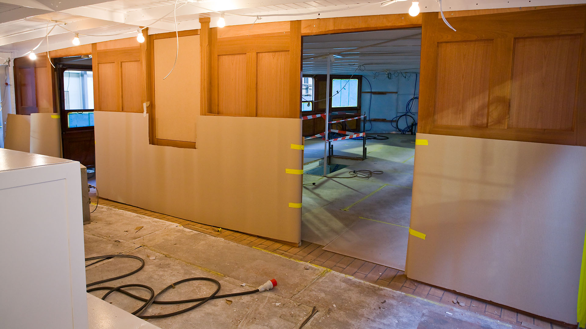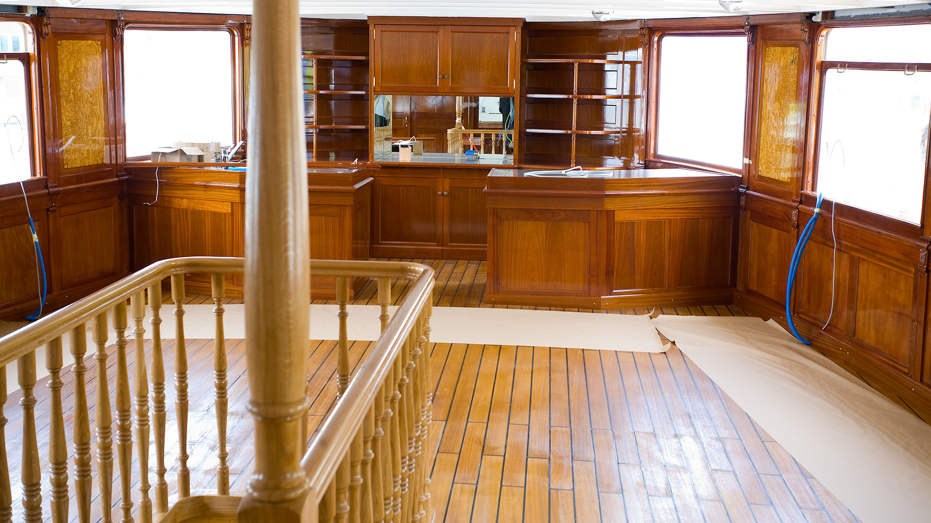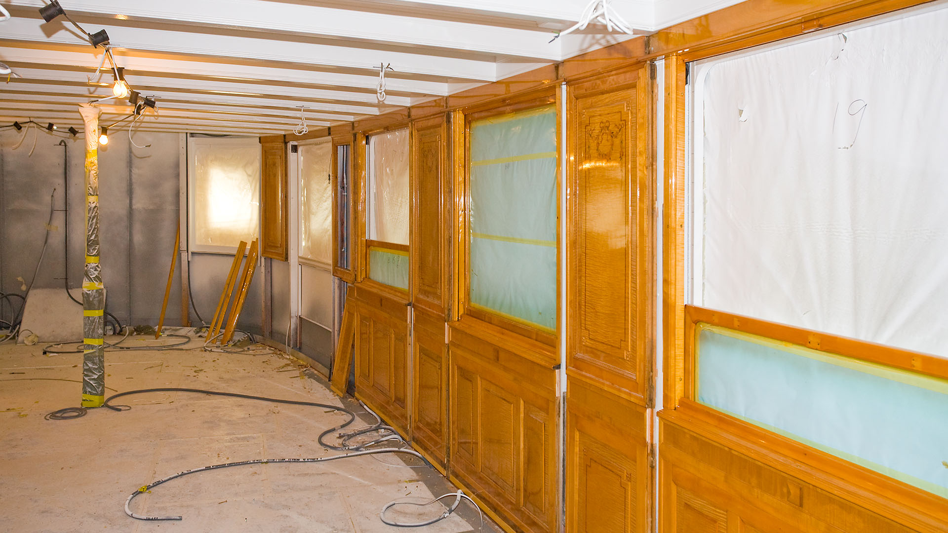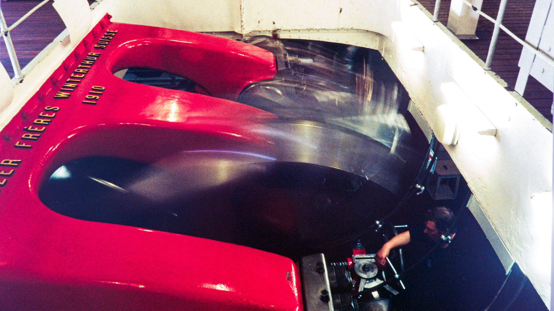 Mise en place des décorations de proue & de poupe, réparation après collision, au chantier CGN (2003)