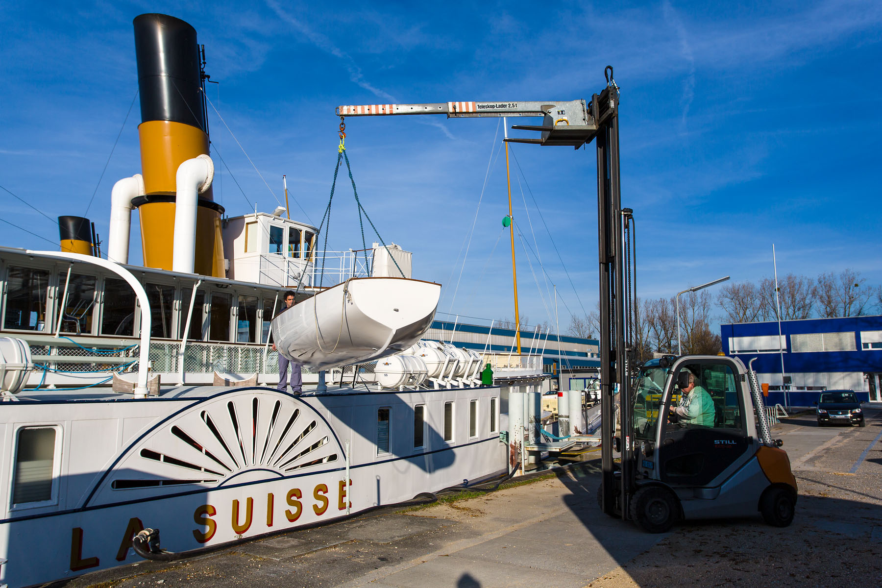 Mise en place du canot de service à Rolle (3 mai 2003)