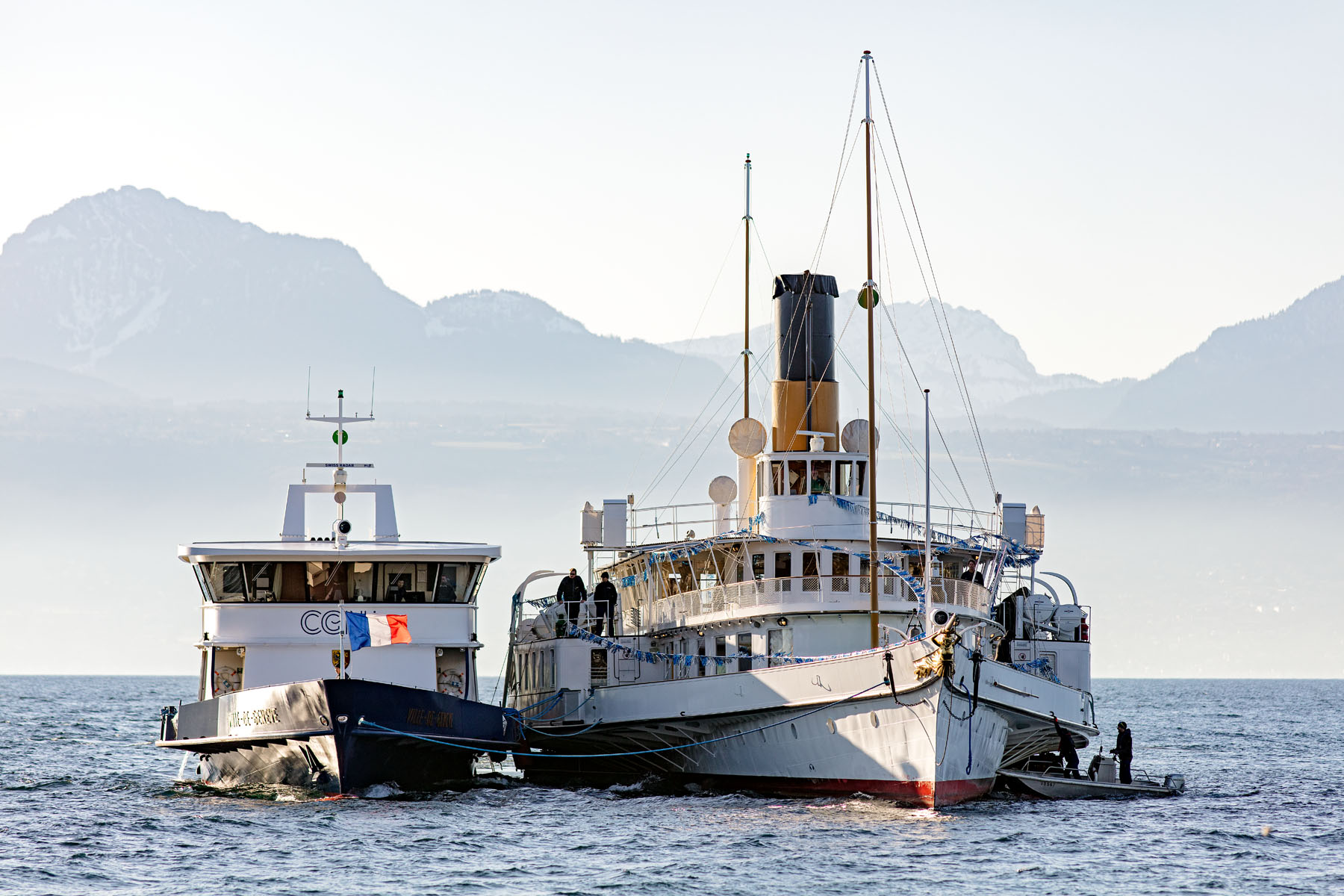 Remuage par le M/S Ville-de-Genève de la GL au chantier et vice-versa (16 janvier et 24 février 2020)