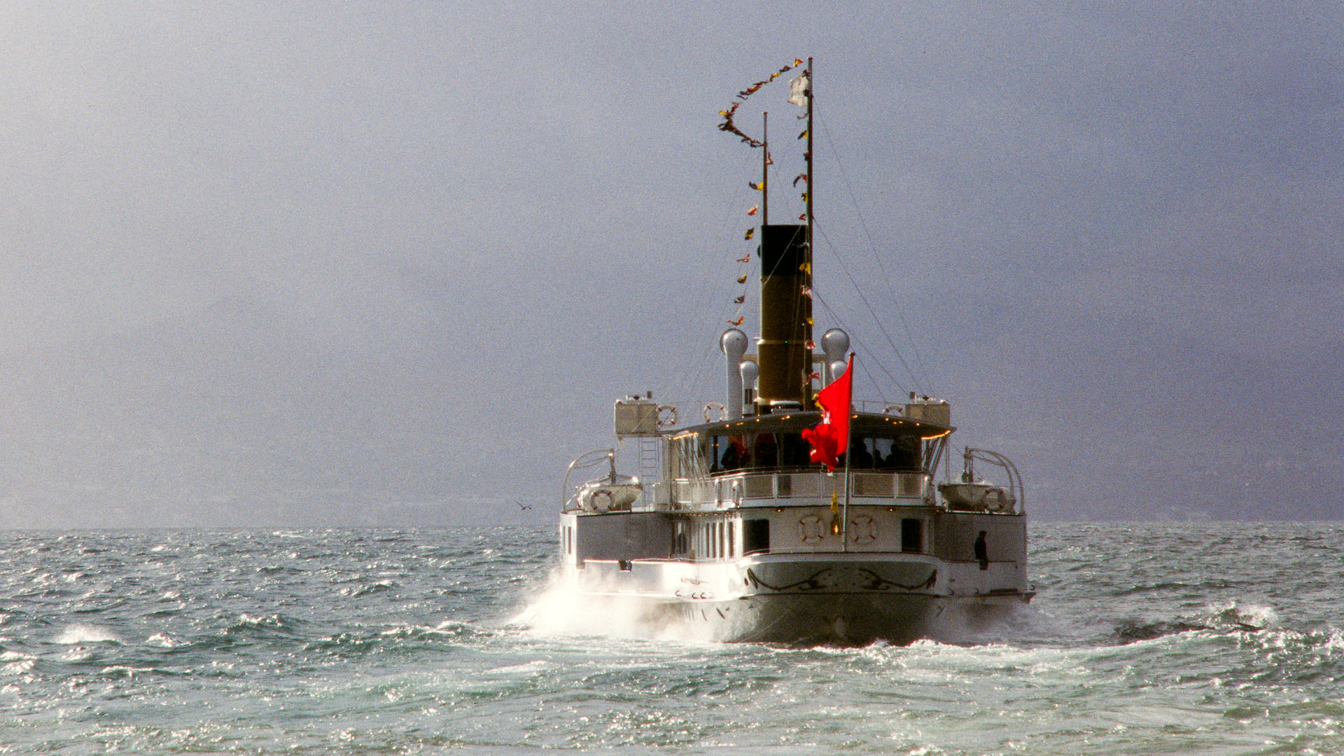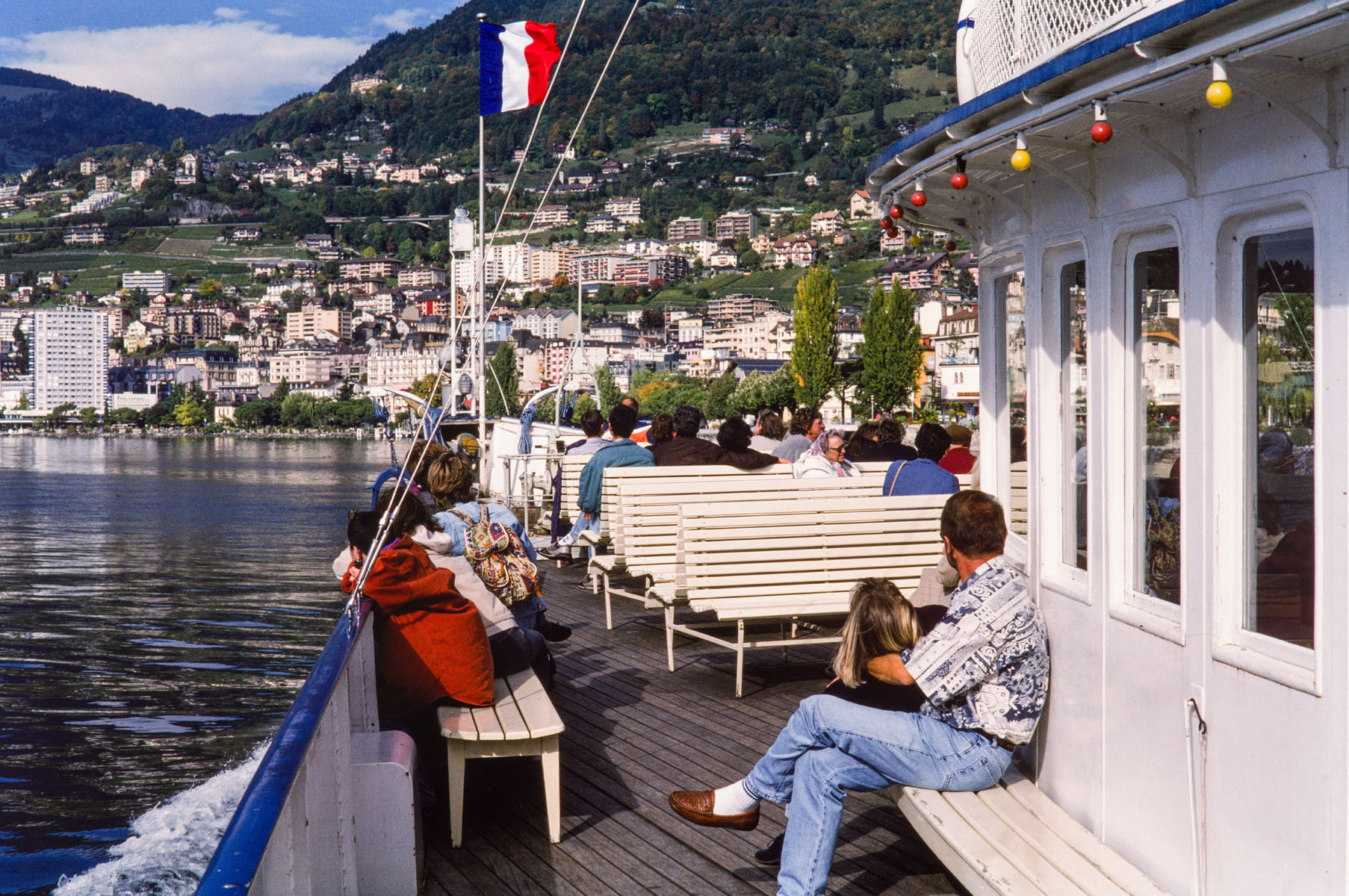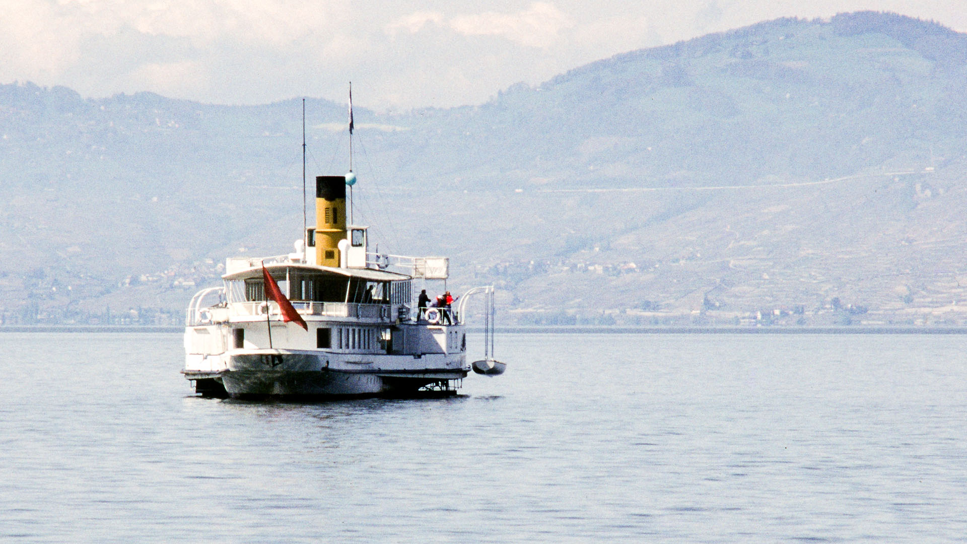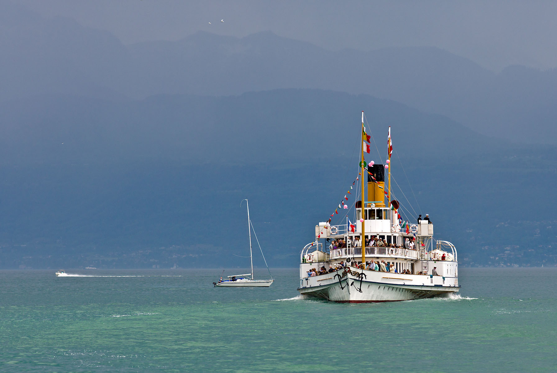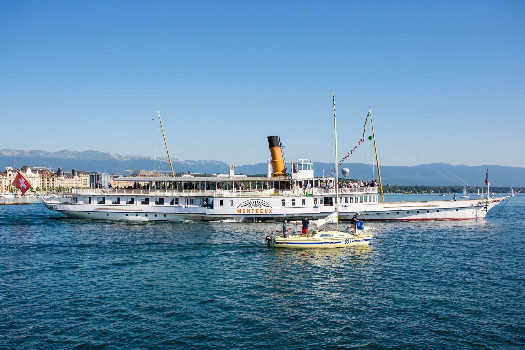 Près de Montreux, croisement avec la barque LA DEMOISELLE (6 juillet 2013)
