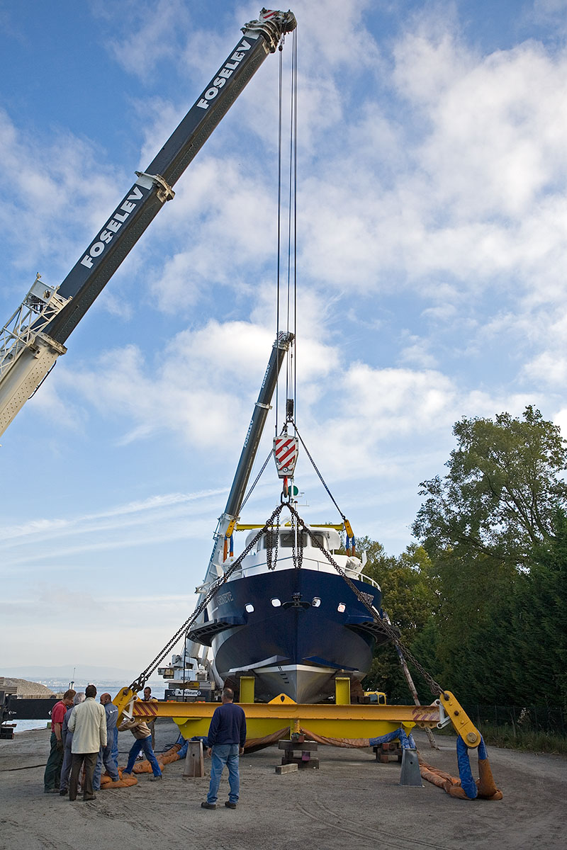 Dans le bassin de radoub du chantier CGN (7 mai 2009)>