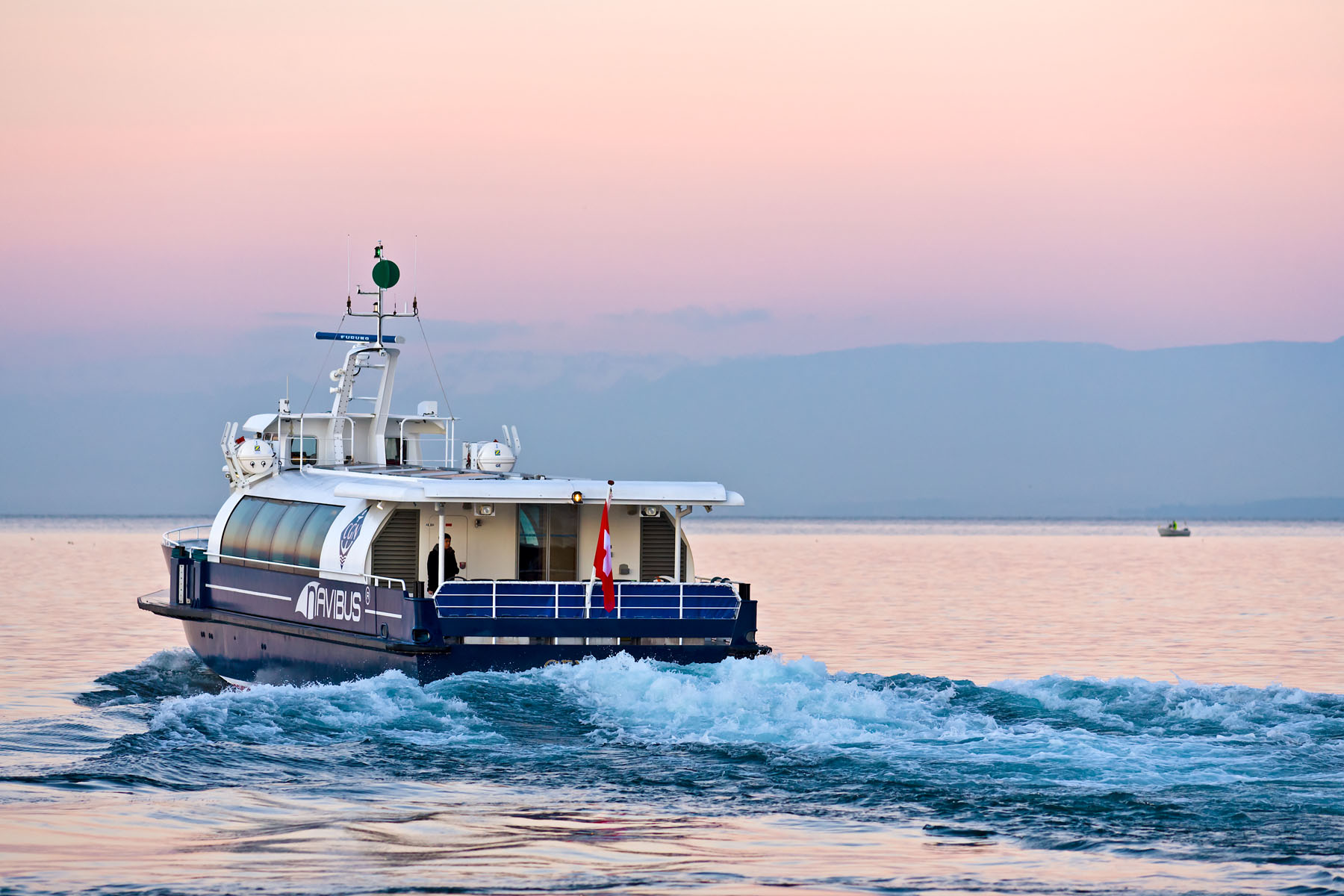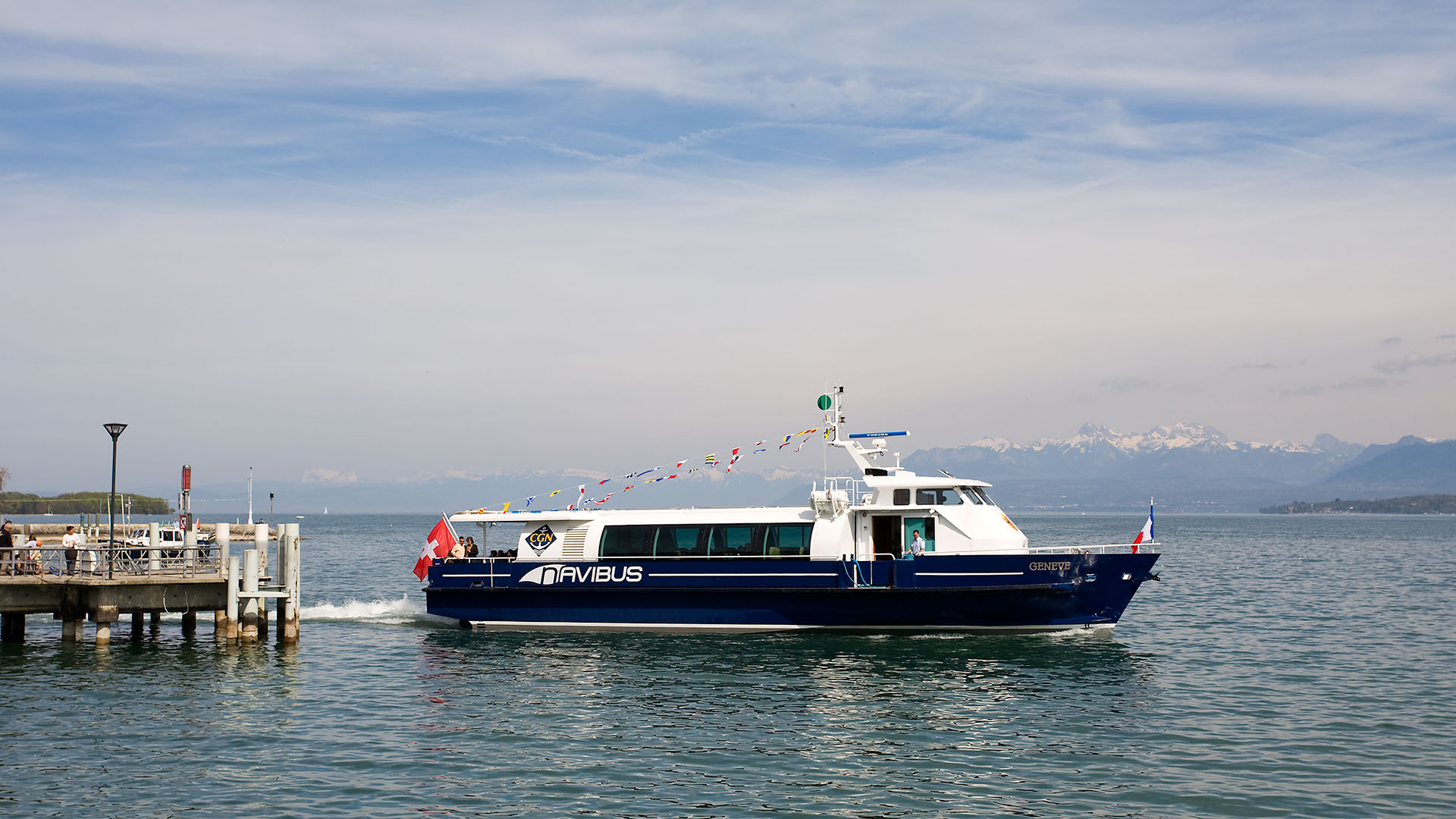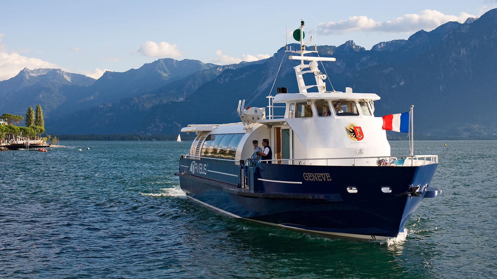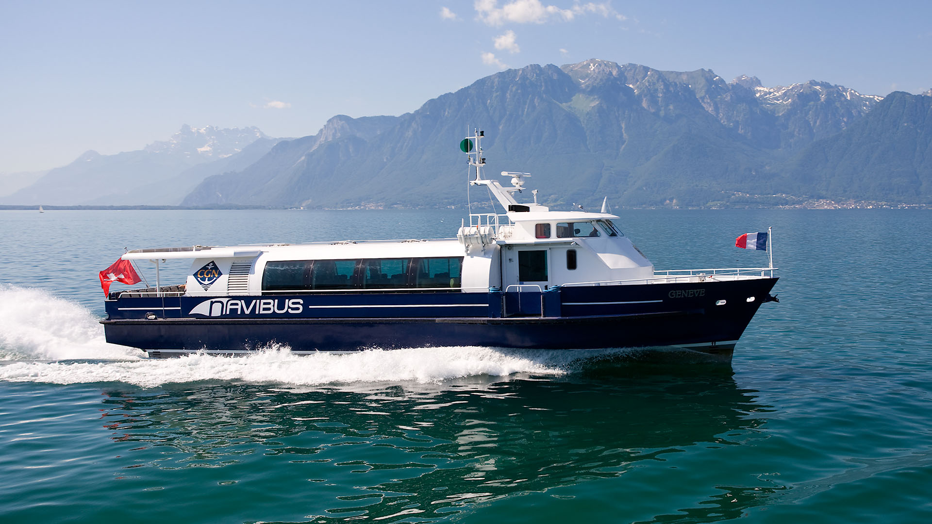 Présentation du bateau en avant-première aux autorités valaisannes; course de démonstration Le Bouveret-Évian-les-Bains & retour (23 octobre 2007)>