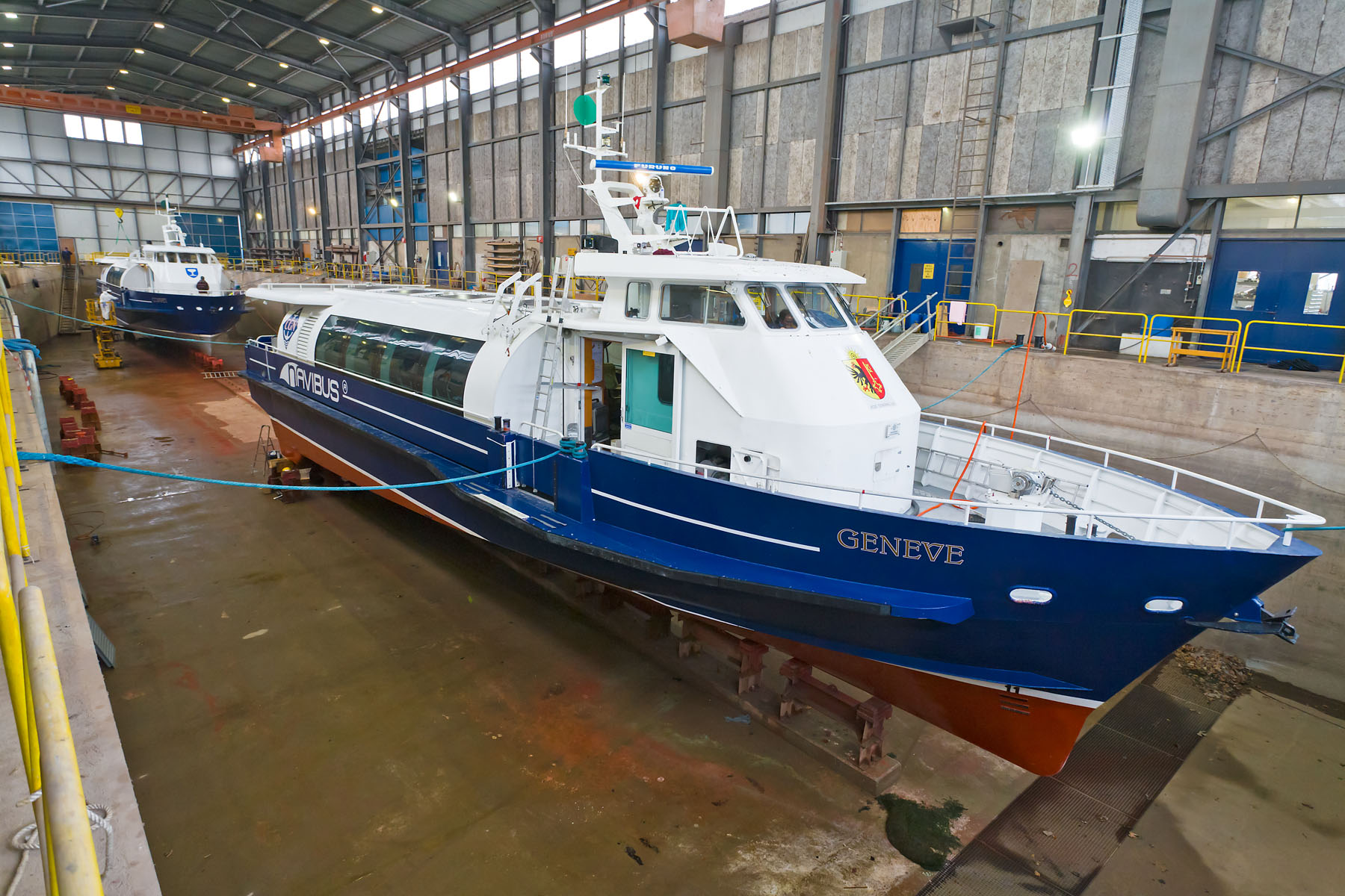 Dans le bassin de radoub du chantier CGN (28 novembre 2014)>