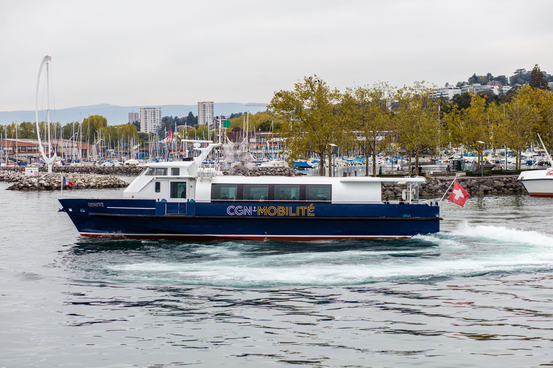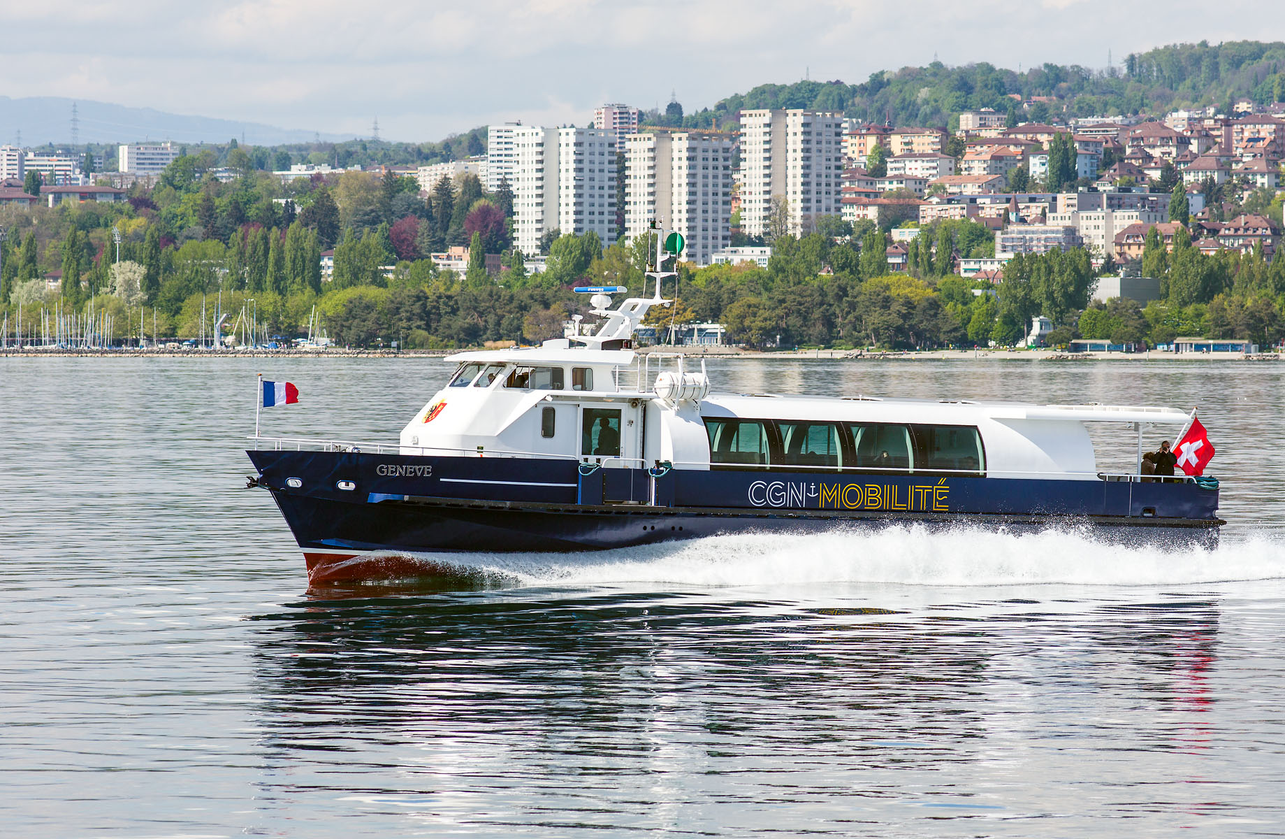 Arrivée de conserve avec le M/S Valais dans la rade de Genève (18 septembre 2008)>