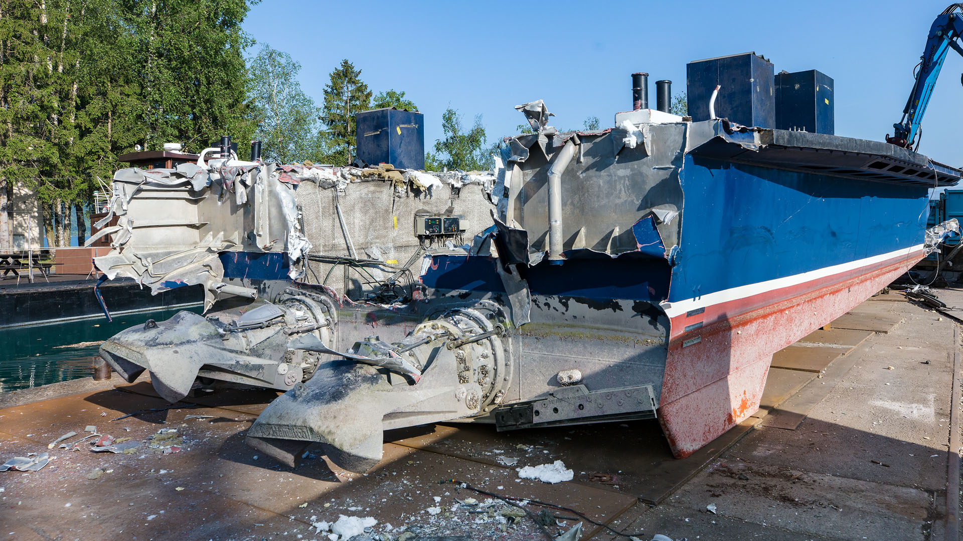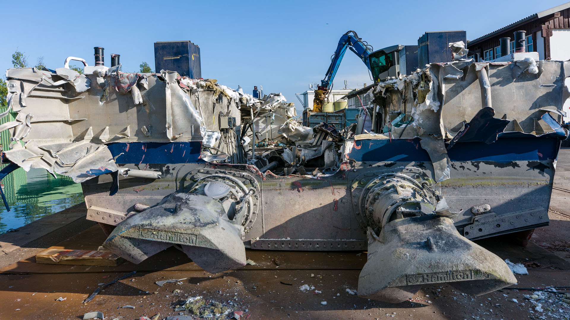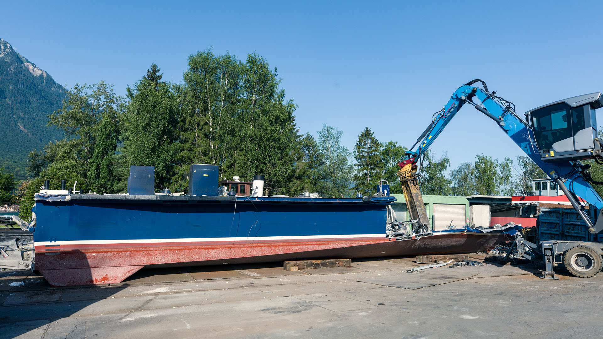 Démolition dans le chantier RHONA au Bouveret (7 juillet 2023)>