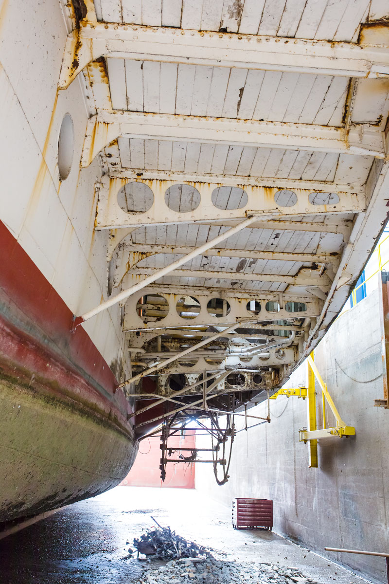 Dans le bassin de radoub du chantier CGN (6 septembre 2016)