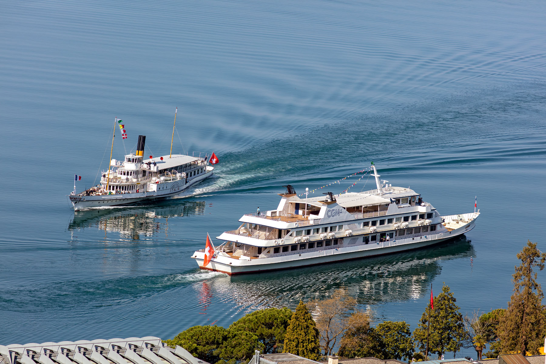 Navigation de conserve avec le S/S Rhône devant Montreux (10 juin 2017)