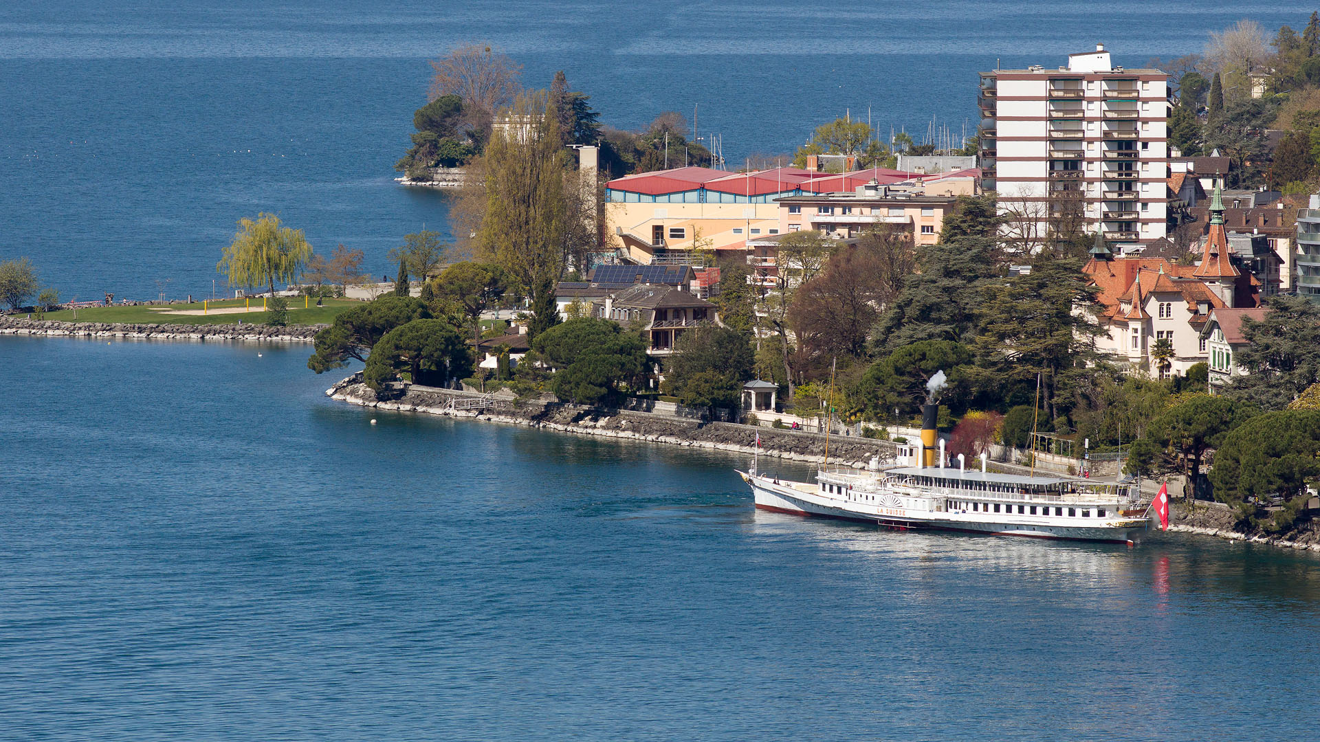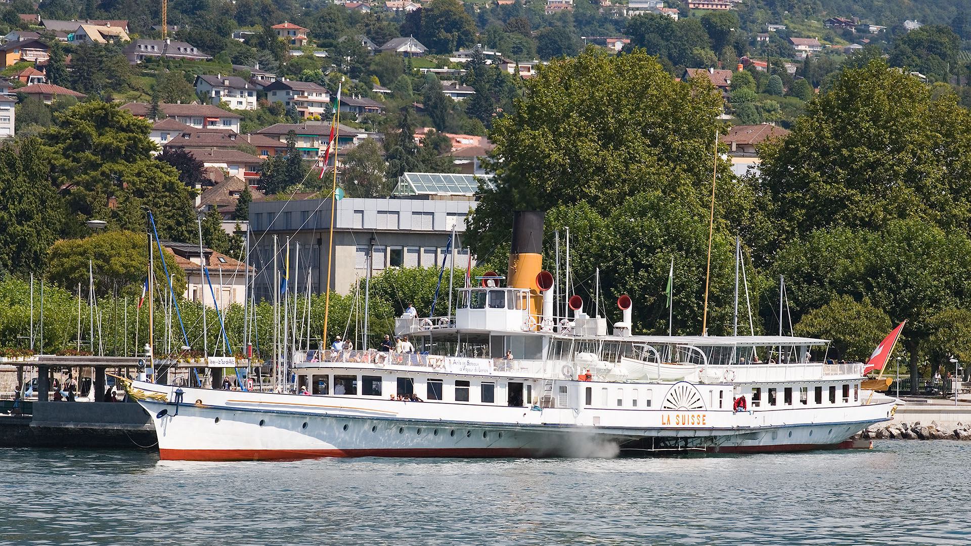 Après son croisement avec le M/S Ville-de-Genève, arrivée à Montreux (25 juillet 2013)