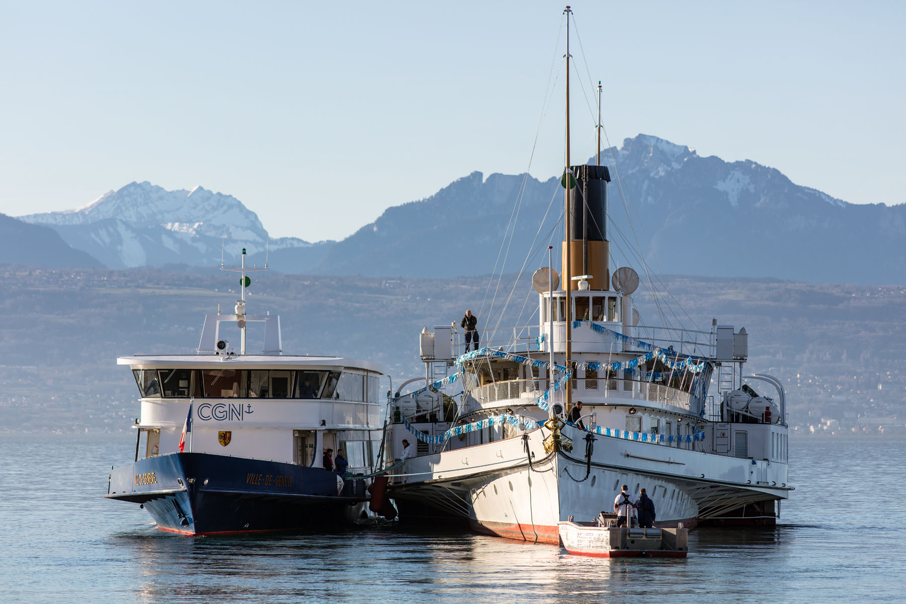 Remuage par le M/S Ville-de-Genève de la GL au chantier et vice-versa (16 janvier et 24 février 2020)