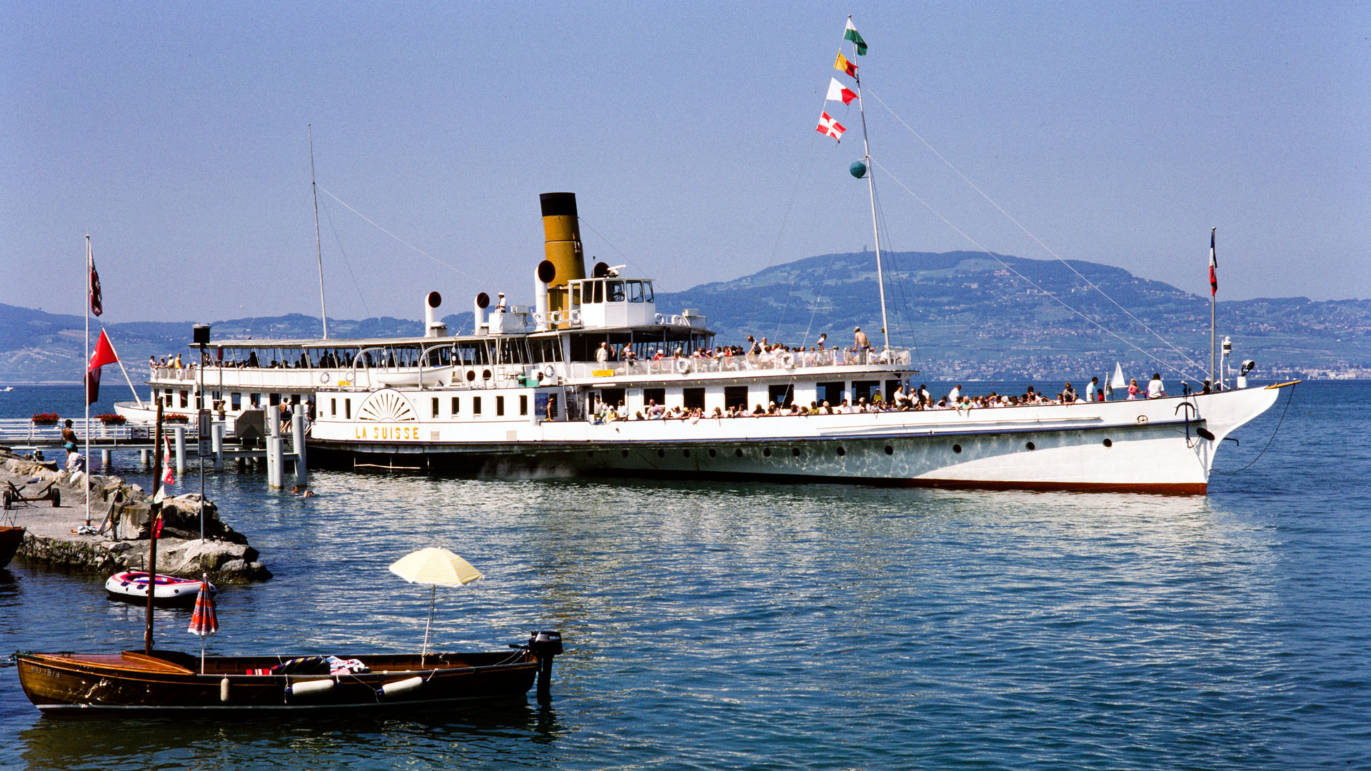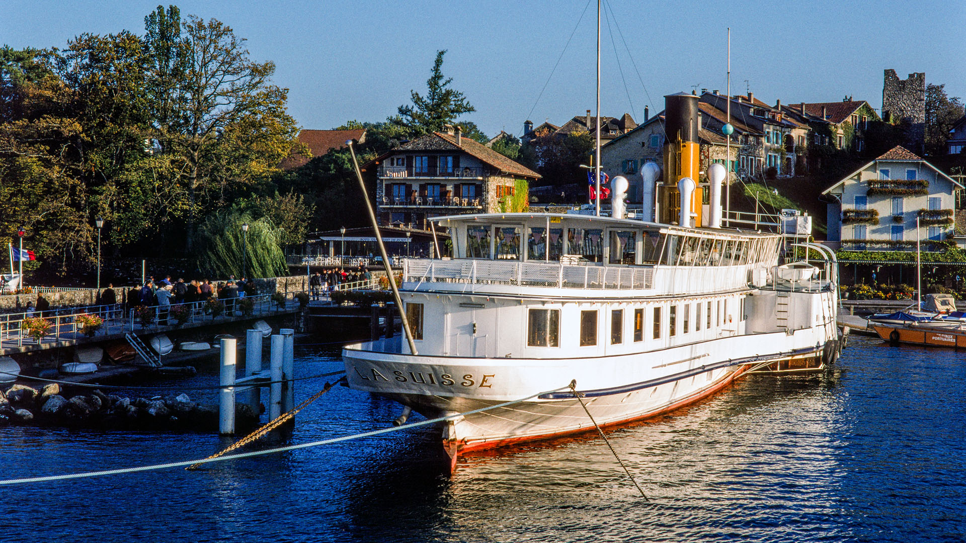 Accostage à Évian-les-Bains, tour du Haut-Lac (1997)