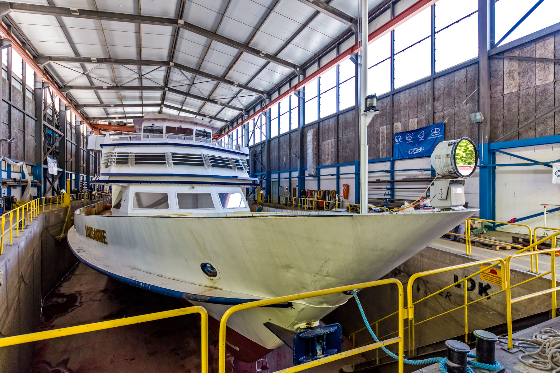 Dans le bassin de radoub du chantier CGN (5 mai 2017)