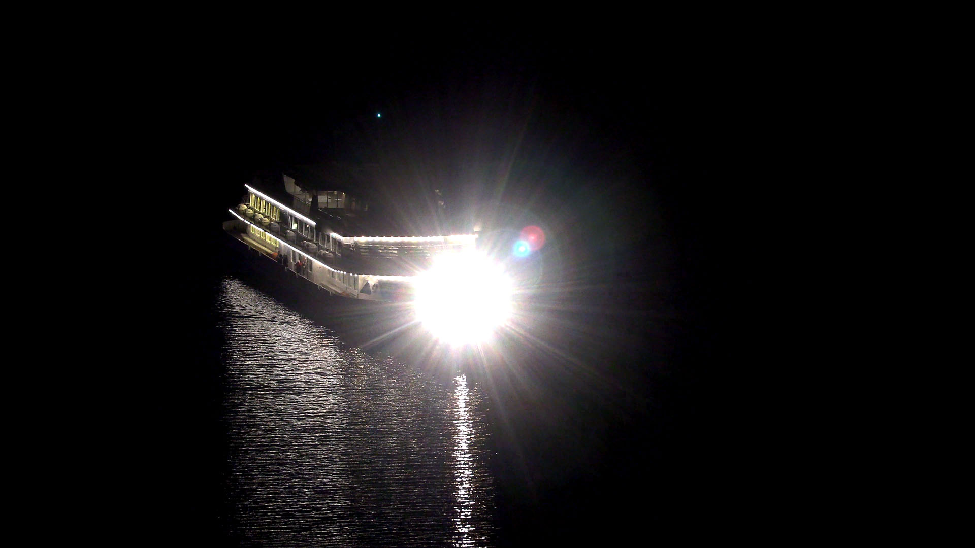 Croisière St-Sylvestre devant Montreux, salutation du capitaine avec le phare (31 décembre 2018)
