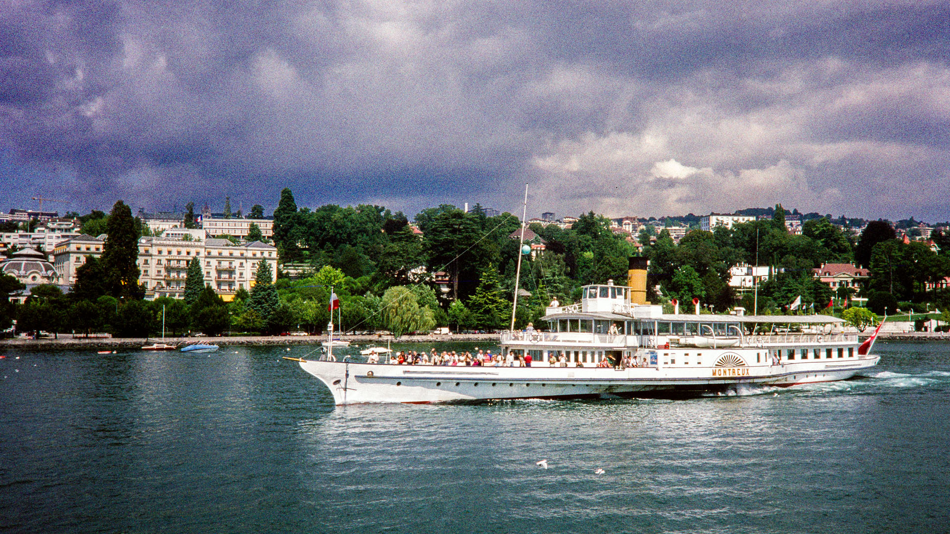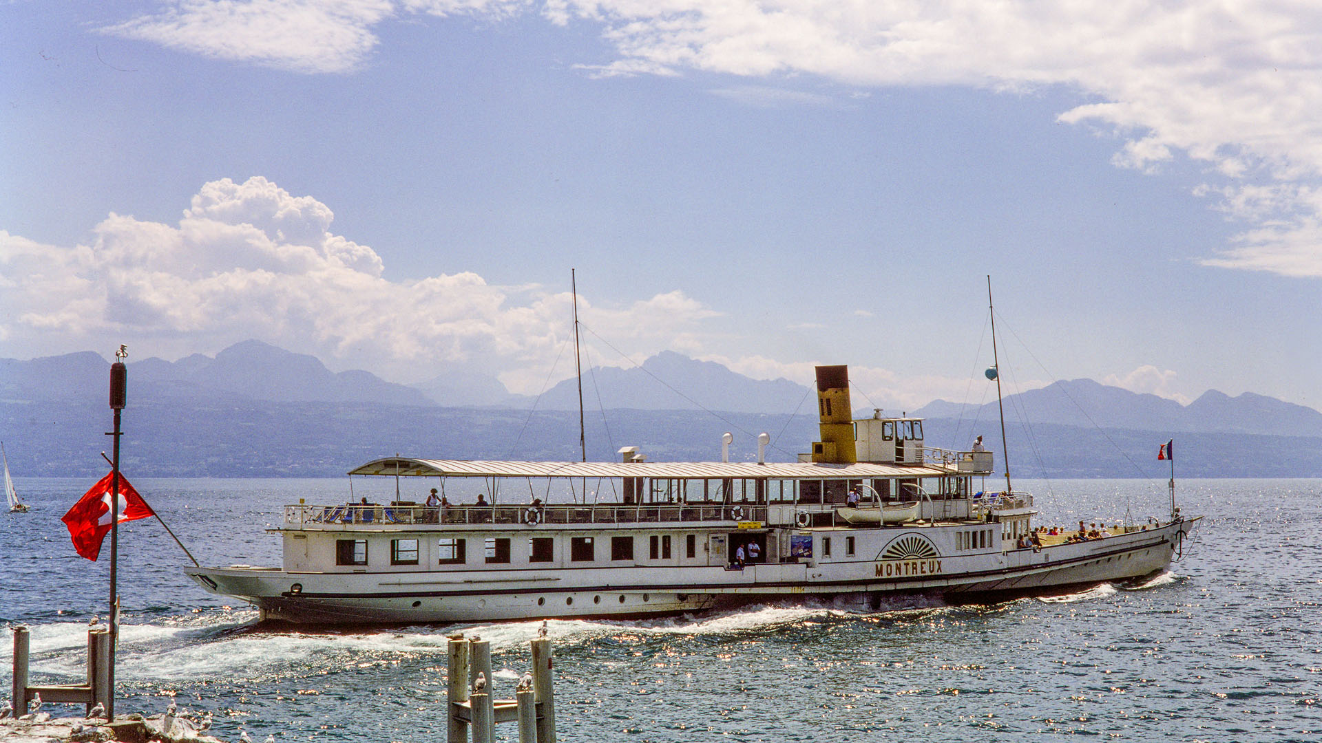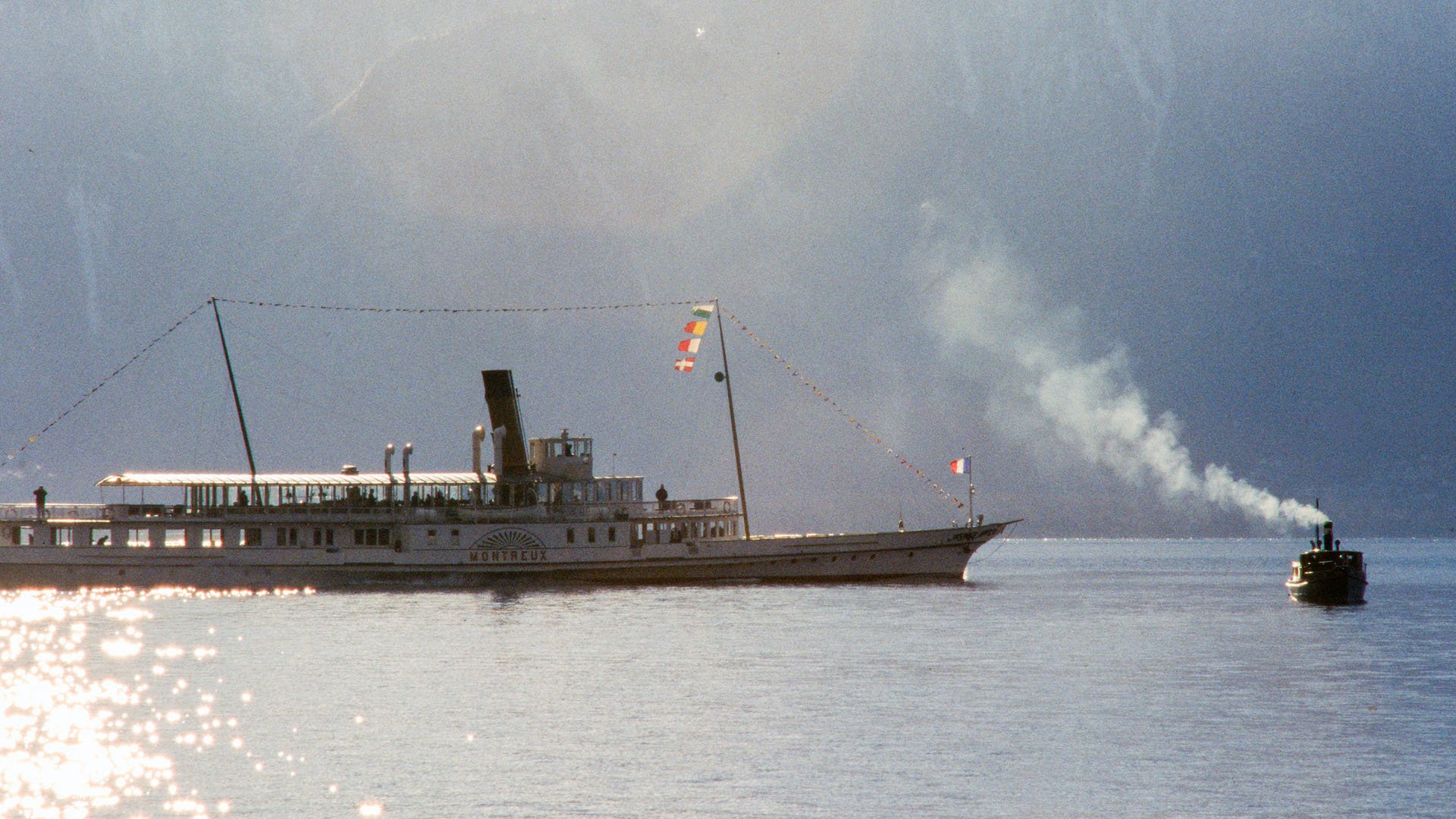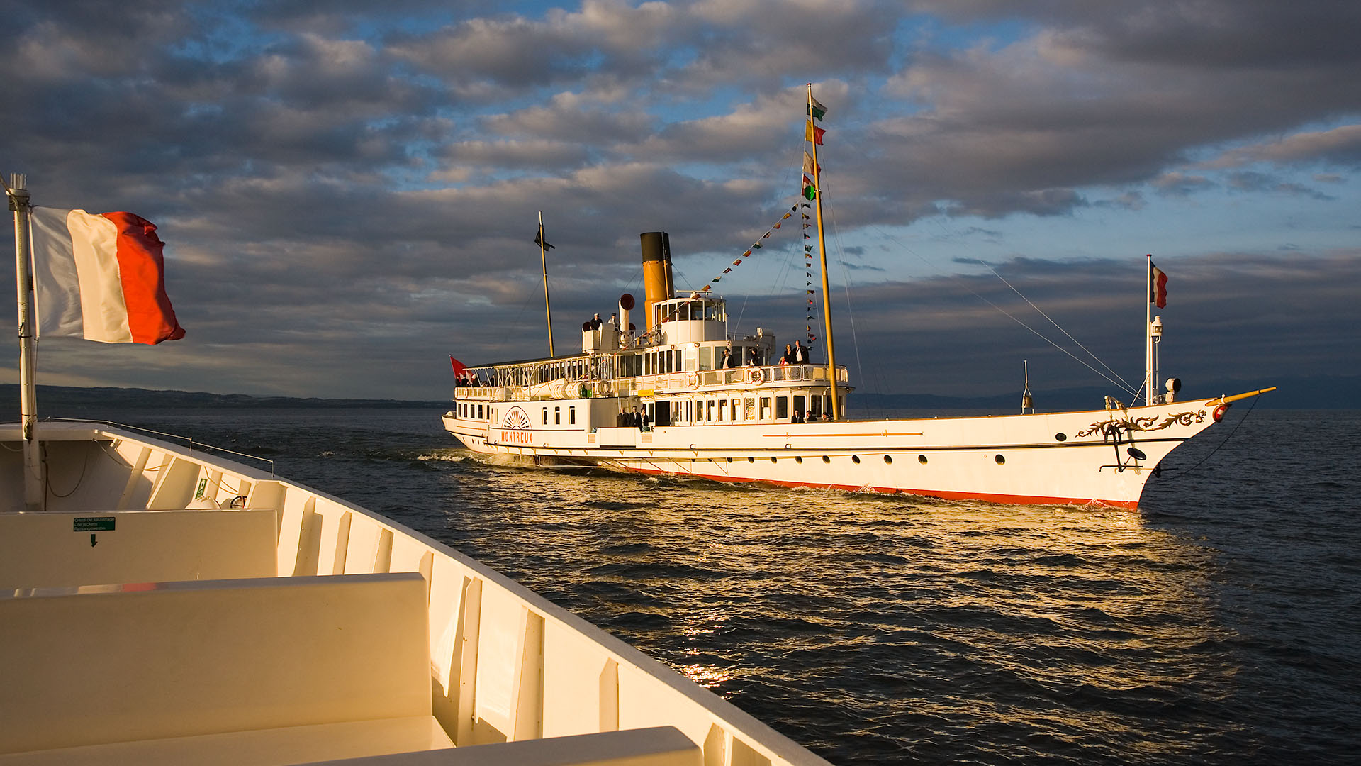 Près de Montreux, croisement avec la barque LA DEMOISELLE (6 juillet 2013)