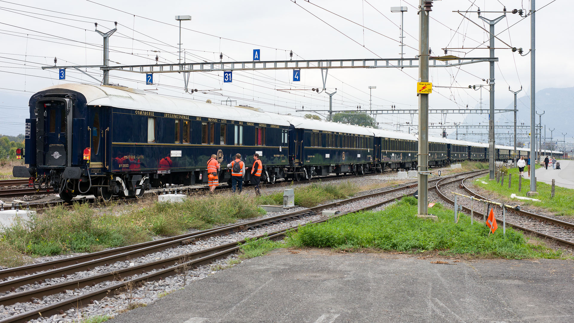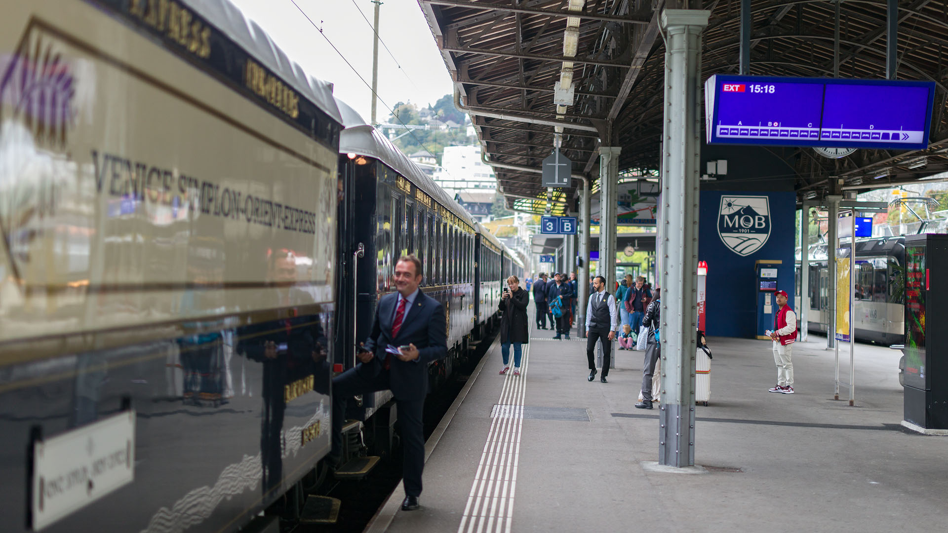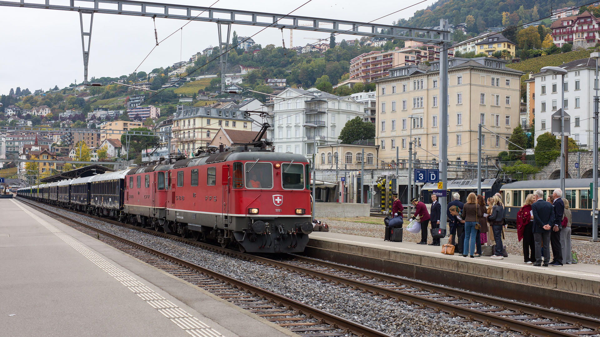 Embarquement de passagers VIP dans le Venice-Simplon-Orient-Express VSOE (Montreux, 11 octobre 2025)