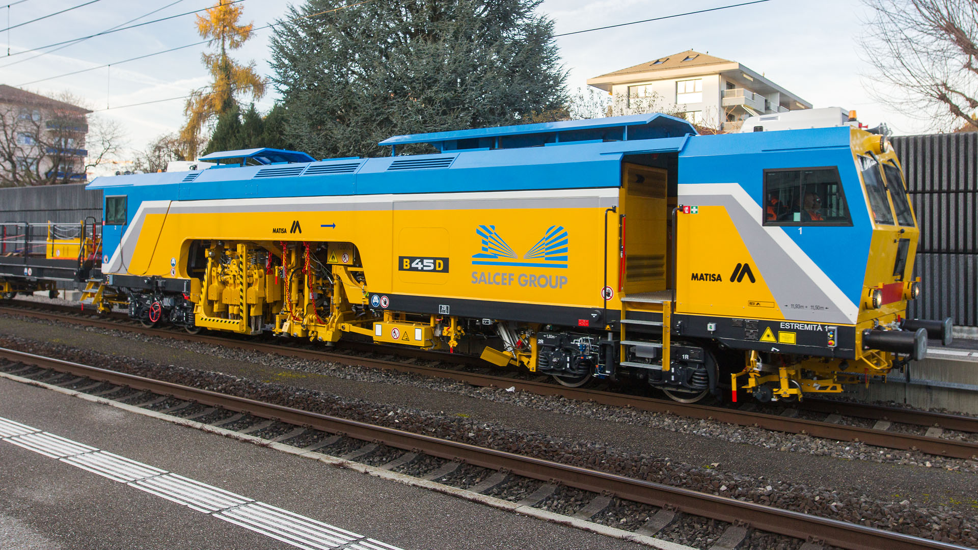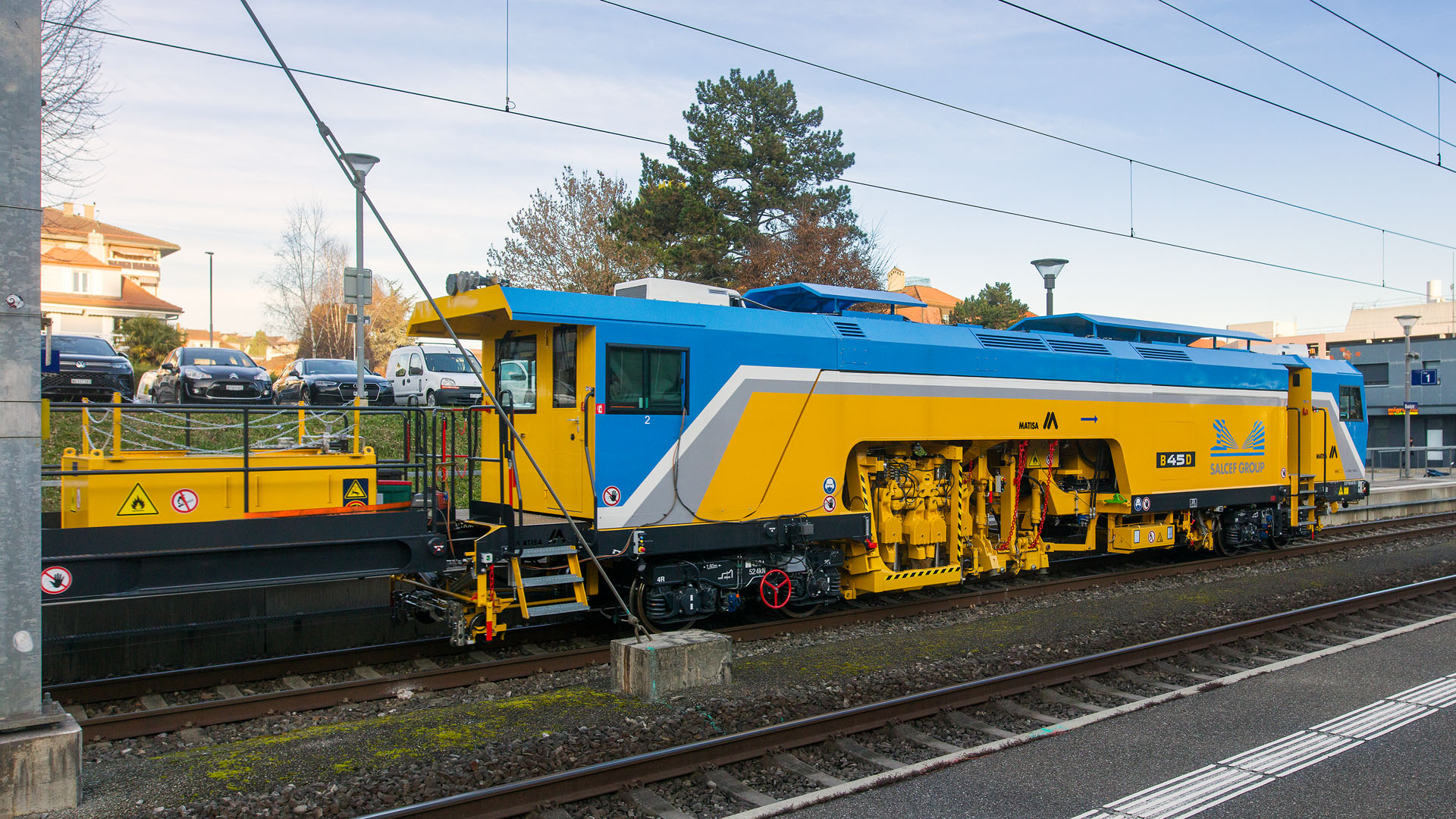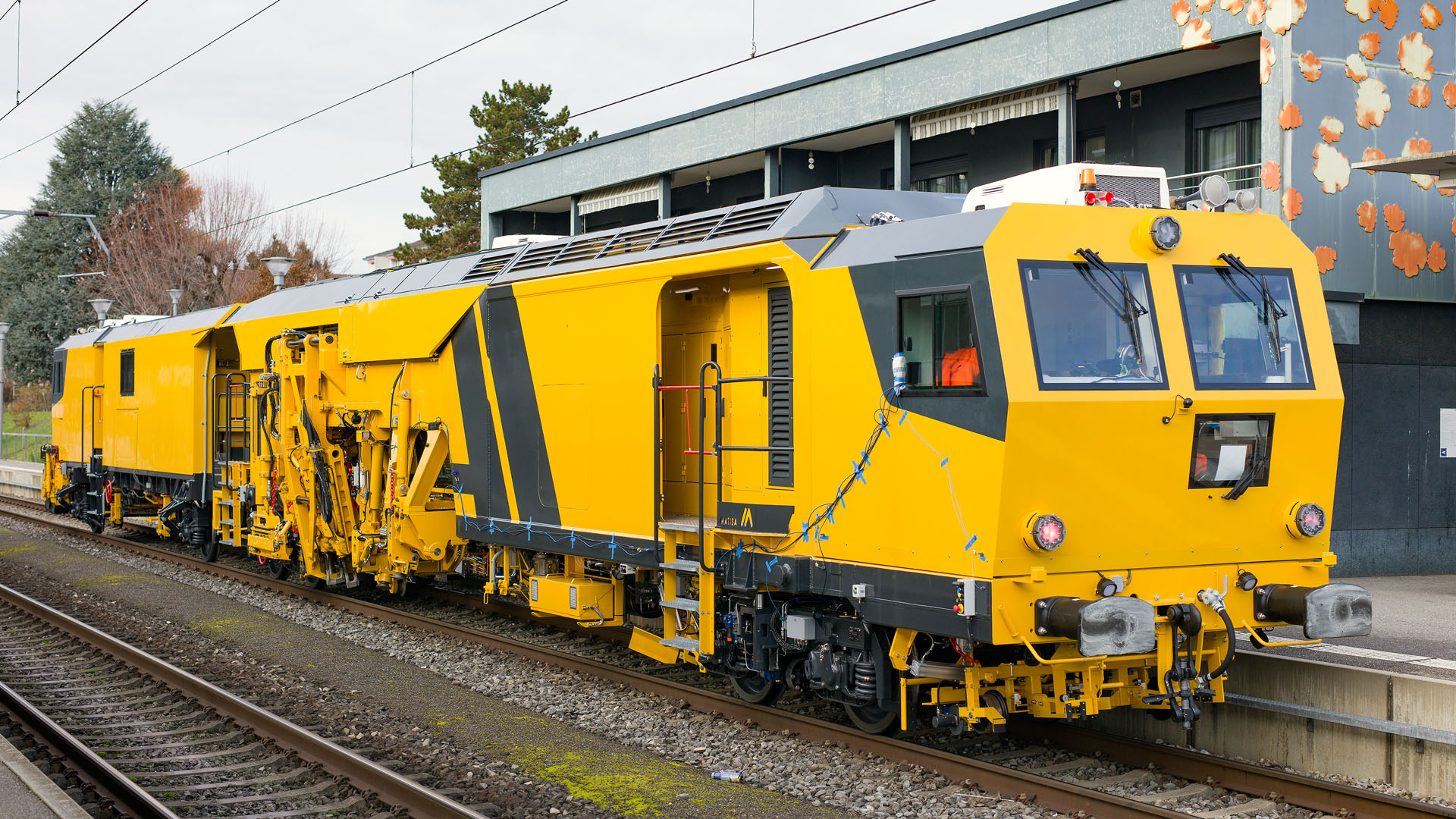 Machine de chantier MATISA en retour d'une course d'essai (Bussigny, 27 novembre 2025)
