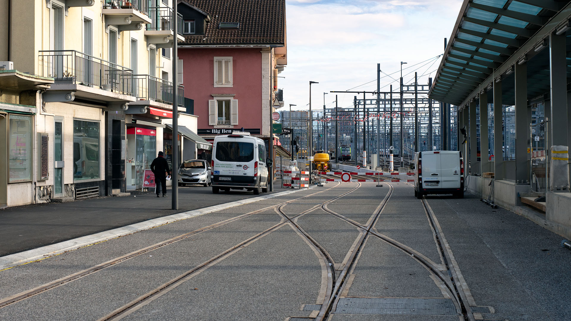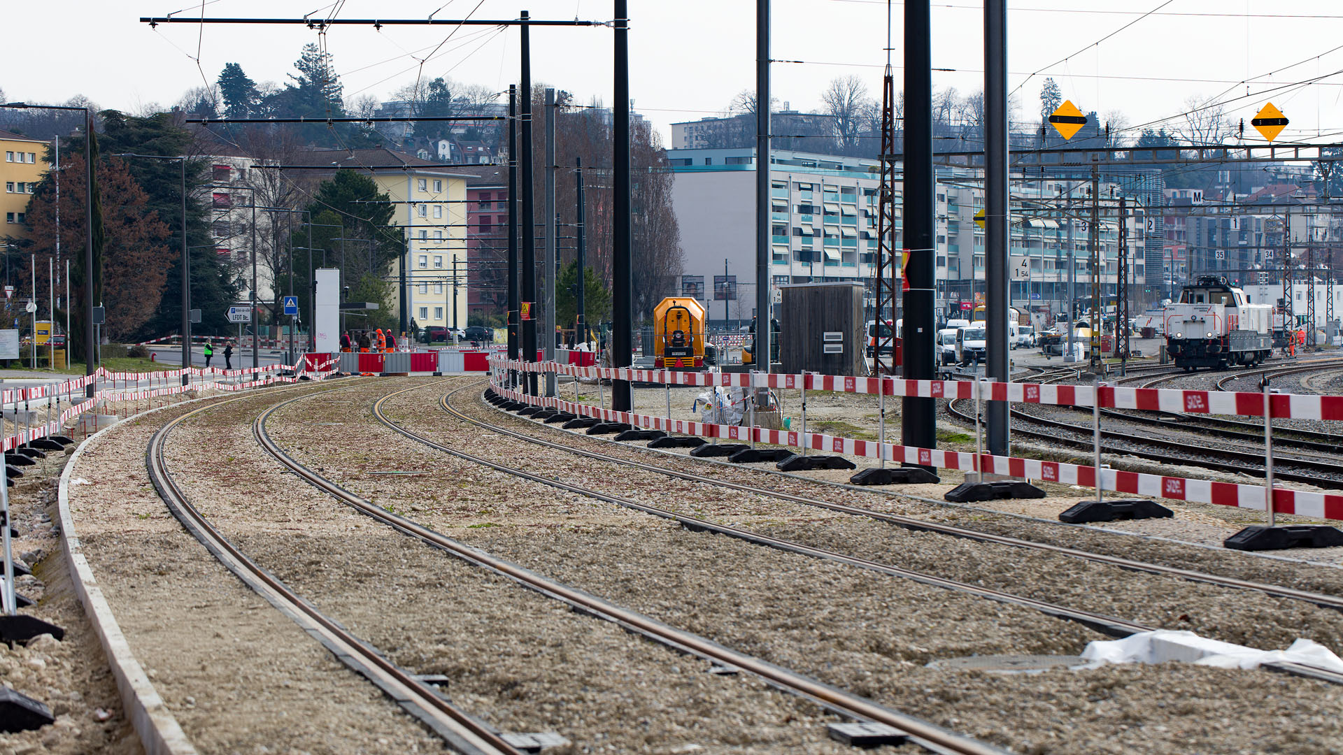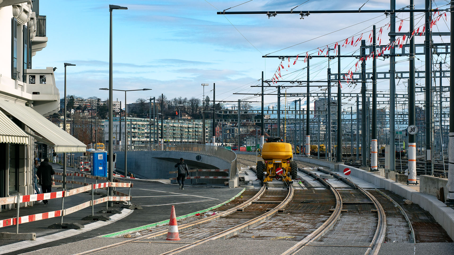 Voies du futur tram en construction (Renens, 6 janvier 2026)
