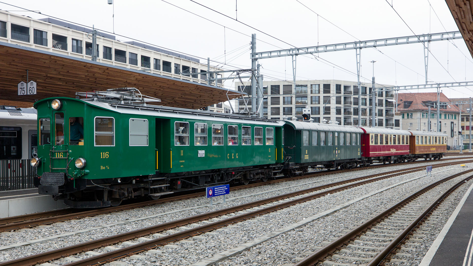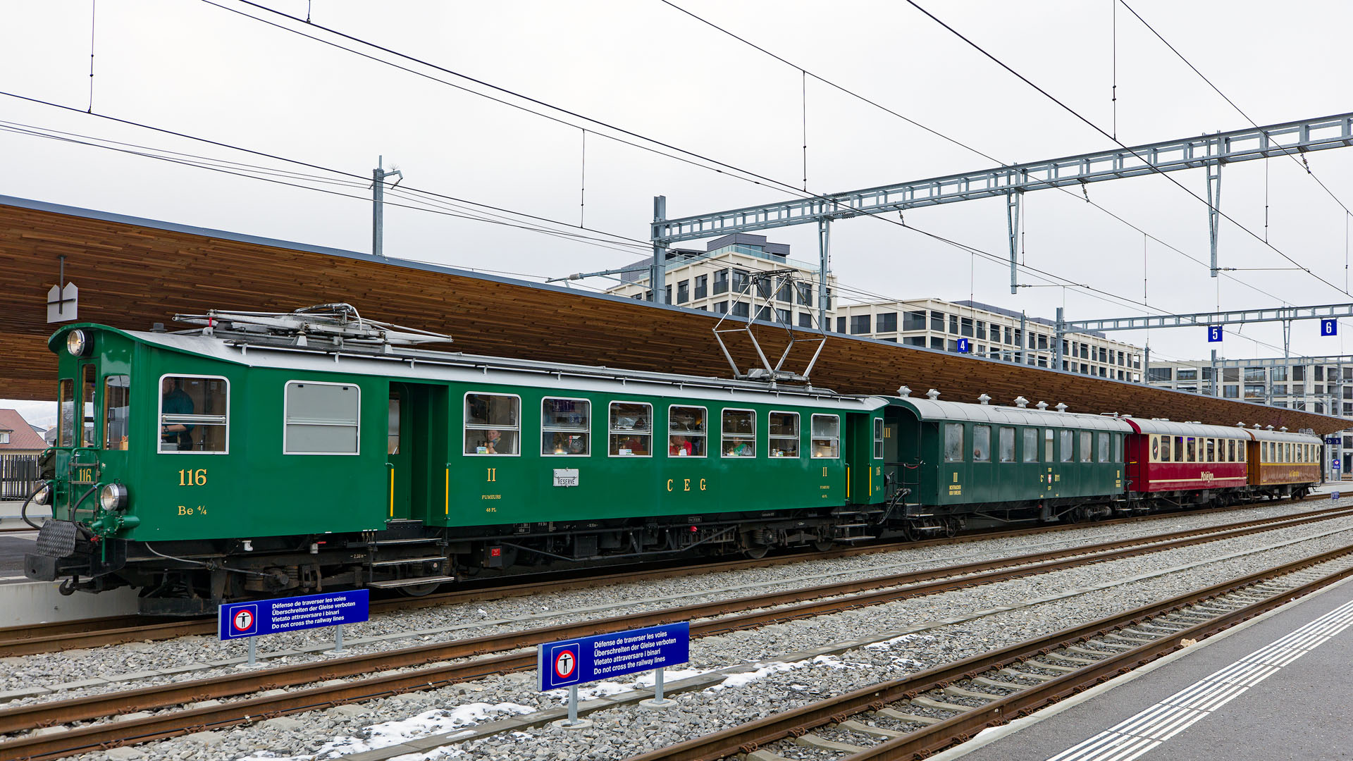 Train spécial historique tracté par Be 4/4 116 CFG (Bulle, 24 janvier 2026)