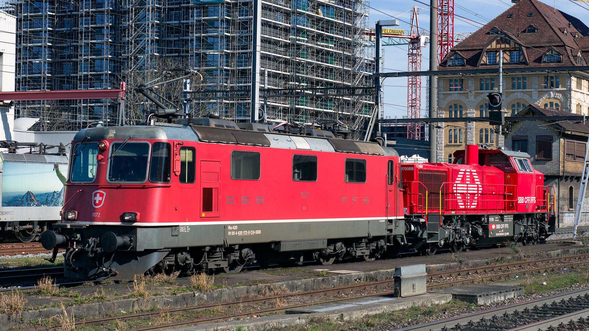 Re 4/4 II + Am 843 Infra (Pratteln, 26 février 2026)