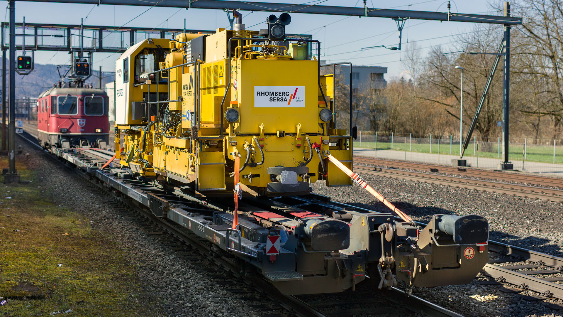 Machine de chantier MATISA sur un wagon surbaissé (Glanzenberg, 3 mars 2026)