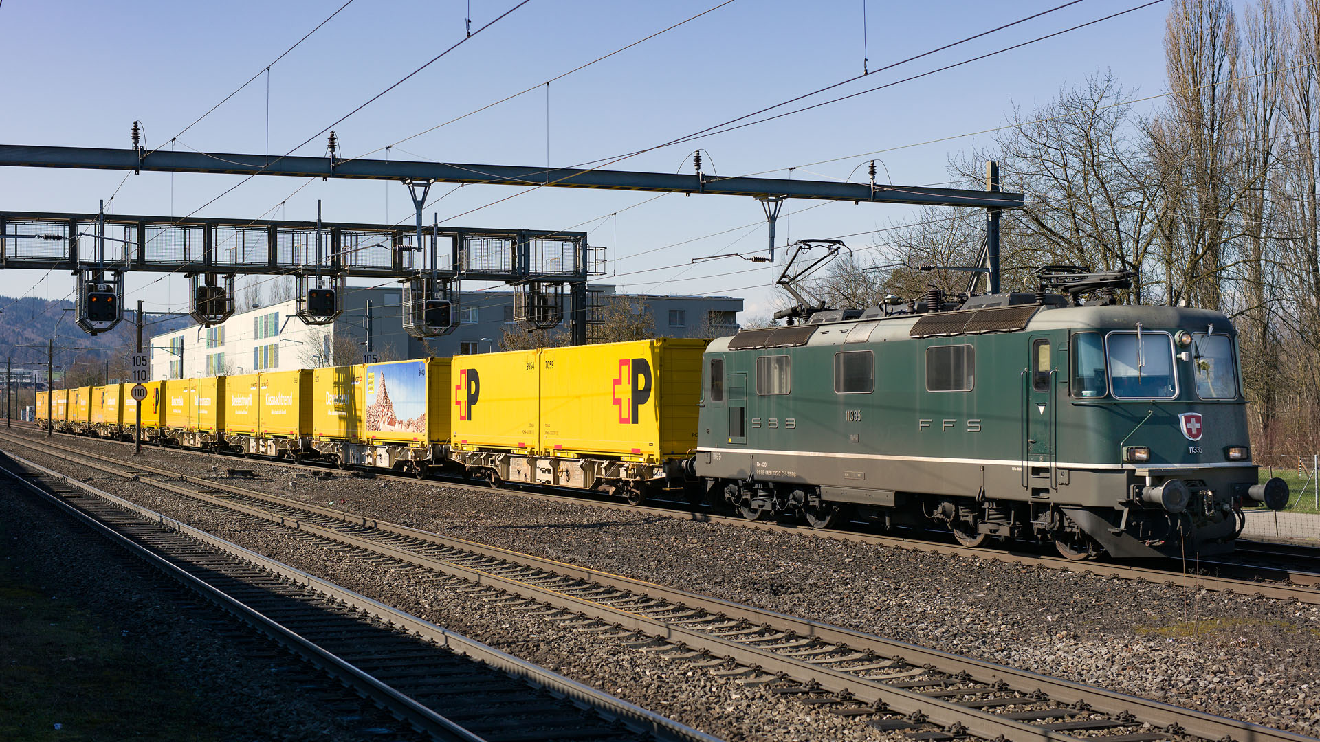 Re 4/4 II + train postal (Glanzenberg, 3 mars 2026)