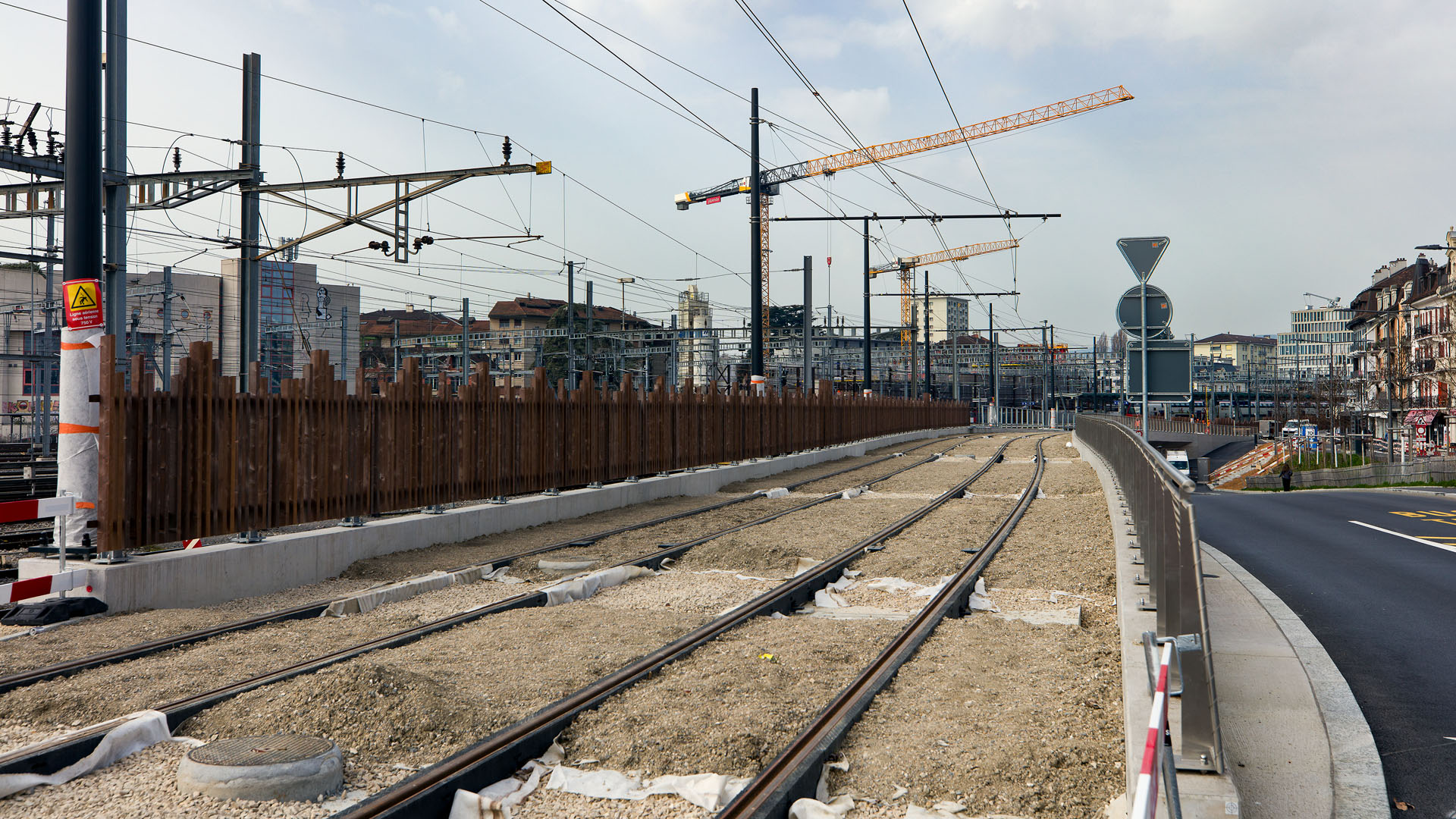 Voies du tram en construction près du terminus (Renens VD, 5 mars 2026)